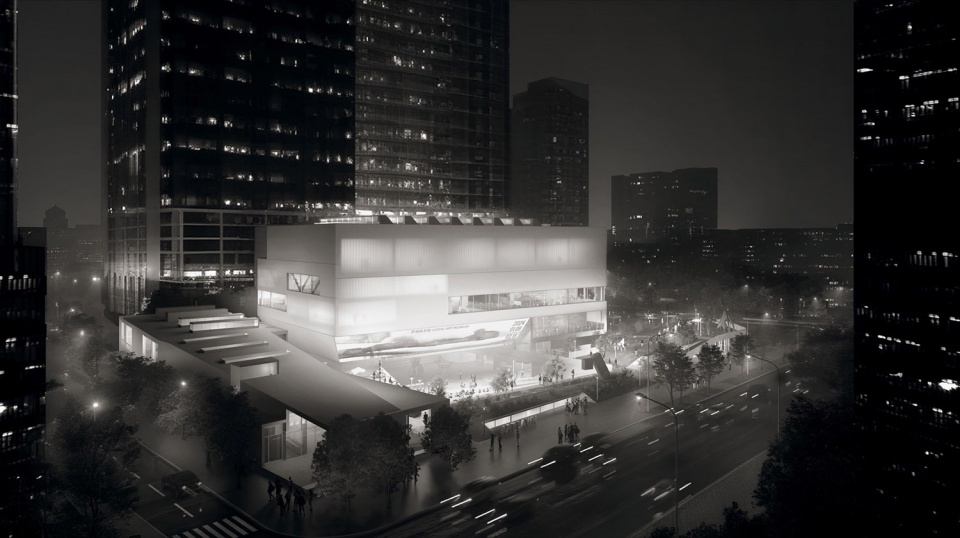 ▼效果图 夜间的美术馆和艺术广场,art museum and plaza at night