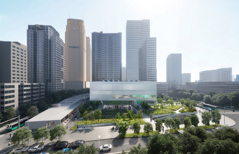 ▼效果图 从南极路看向美术馆,view from Nanji Road