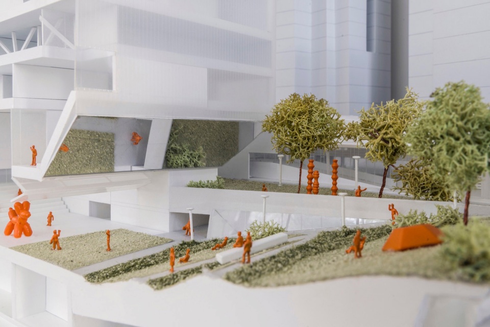 Unlike most art museums standing in open spaces, the Luohu Art Museum is surrounded by high-rises. Expanding the building scale fivefold while maintaining a 55% green ratio is a great design challenge. Our strategy turns this challenge into an opportunity by creating an art museum fully integrated into the park. A close connection with the local community allows the museum to better fulfill its public education mission, while mixed-use programs serving the district and the city will support the museum operations, making them more sustainable. We position the green space next to the western road, ensuring maximum public accessibility and creating an imaginative forecourt for the museum.
