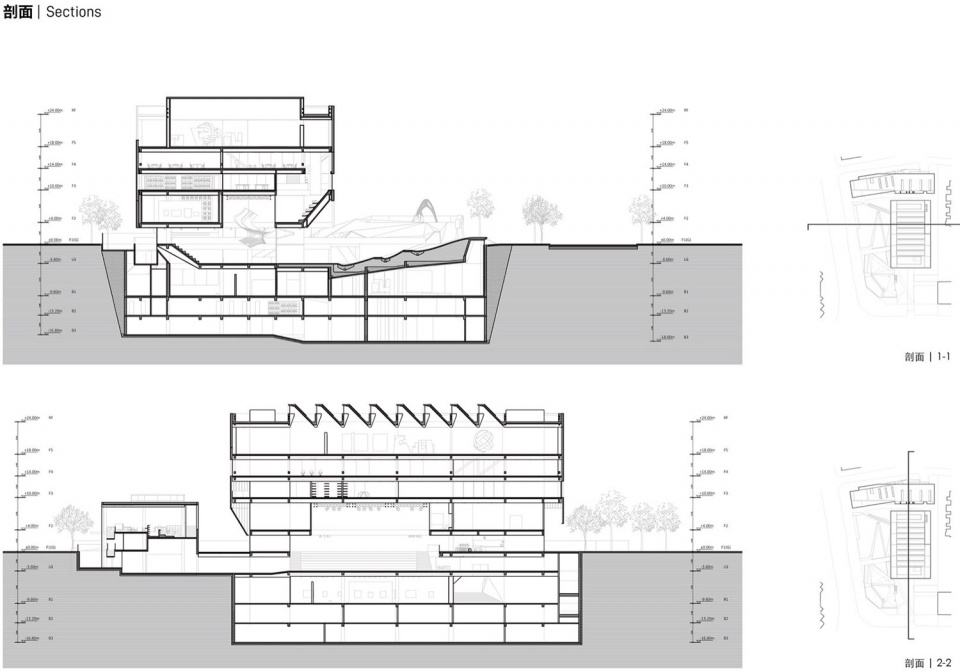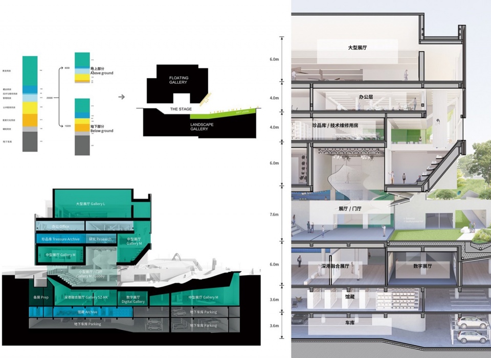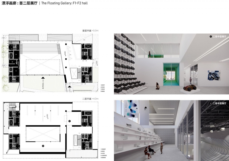 ▼首层、二层展厅,the Floating Gallery: F1–F2 hall