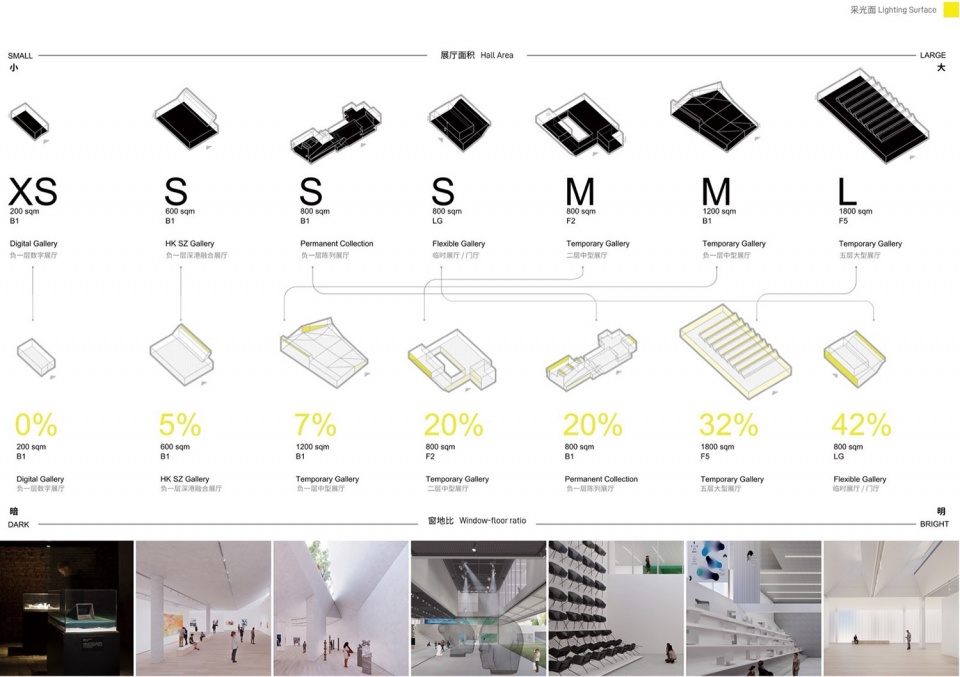 ▼尺度分析 不同空间条件的画廊,exhibition halls with diverse conditions