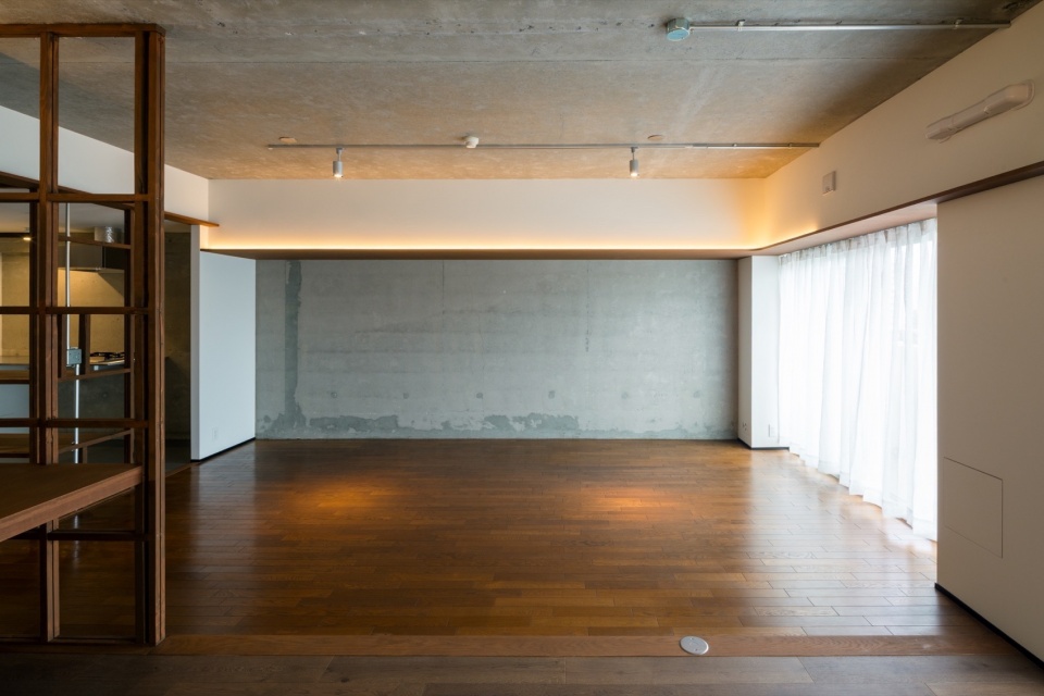 2.Stripping the Structure to its Raw State Japanese reinforced concrete (RC) condominiums possess high construction precision, even when intended to be concealed. In this project, the surface preparation (keren) after stripping wallpaper was treated not as a repair step, but as the final texture. This attention to detail reflects a unique Japanese integrity rooted in carpentry culture, positioning the structure itself as an “indigenous finish.”