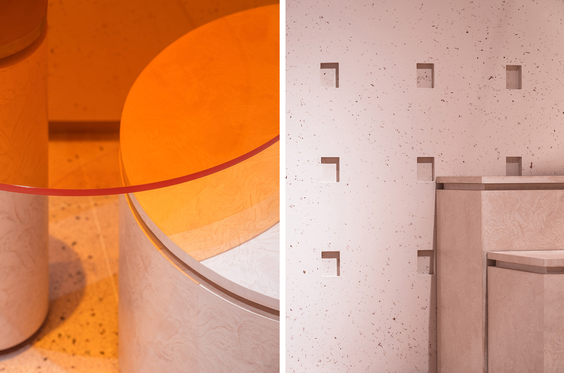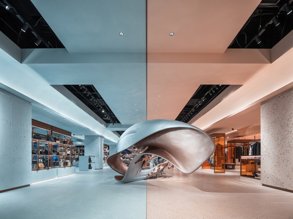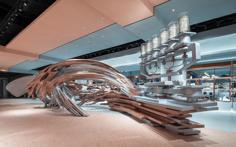 Secondary access: The beginning of the concept throughout the design also serves as the temporal scenario at the end of the store. Alldesign created the artful installation by using 3D printing to dynamically reinforce the blurry concept of time.