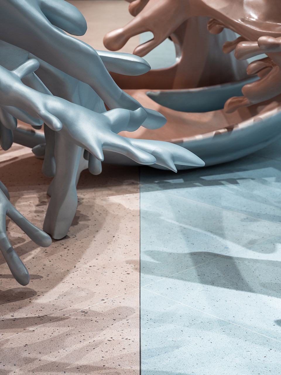 次入口:作为概念的开端也是店铺的最后一个场景时间的尽头。在平行世界的室内设计中,我们藉由此3D打印雕塑,强化时间这无法捉摸的概念。