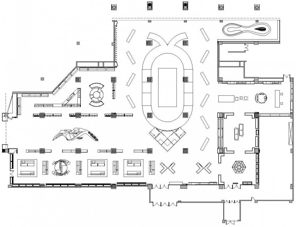 ▼展架和形态丰富的天花,display shelves and irregular ceiling