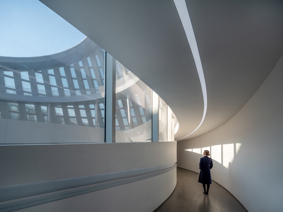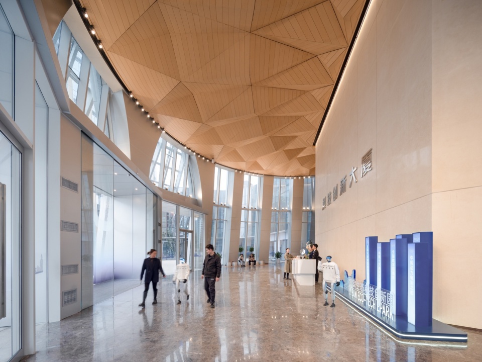A central park, designed to maintain the area’s original topography, weaves together multiple layers of pedestrian paths, elevated walkways, and planted canopies. The park’s architectural focus is a new digital art museum, distinguished by its sculptural facade clad in aluminum panels, which also serves as an innovative structural mesh shell resulting in large column-free exhibition spaces. The museum’s flexible galleries are designed to host rotating exhibitions that celebrate digital innovation, art, and Yibin’s cultural identity.