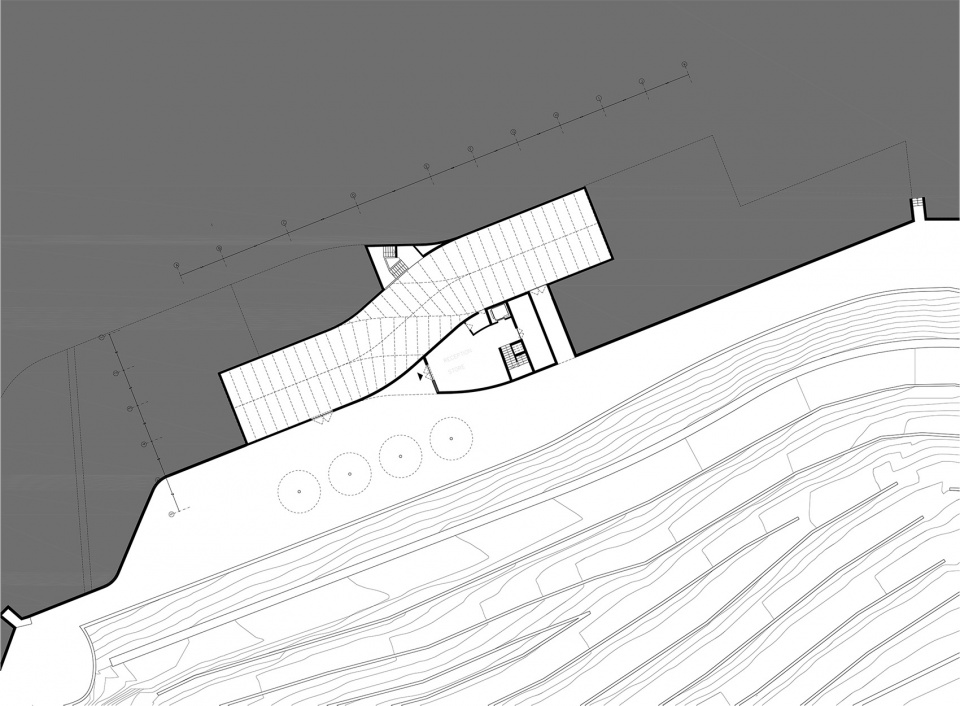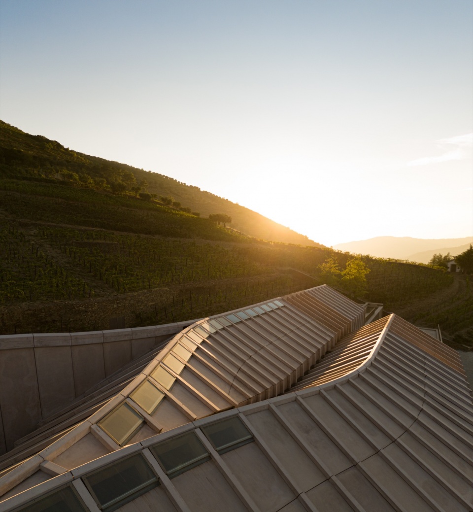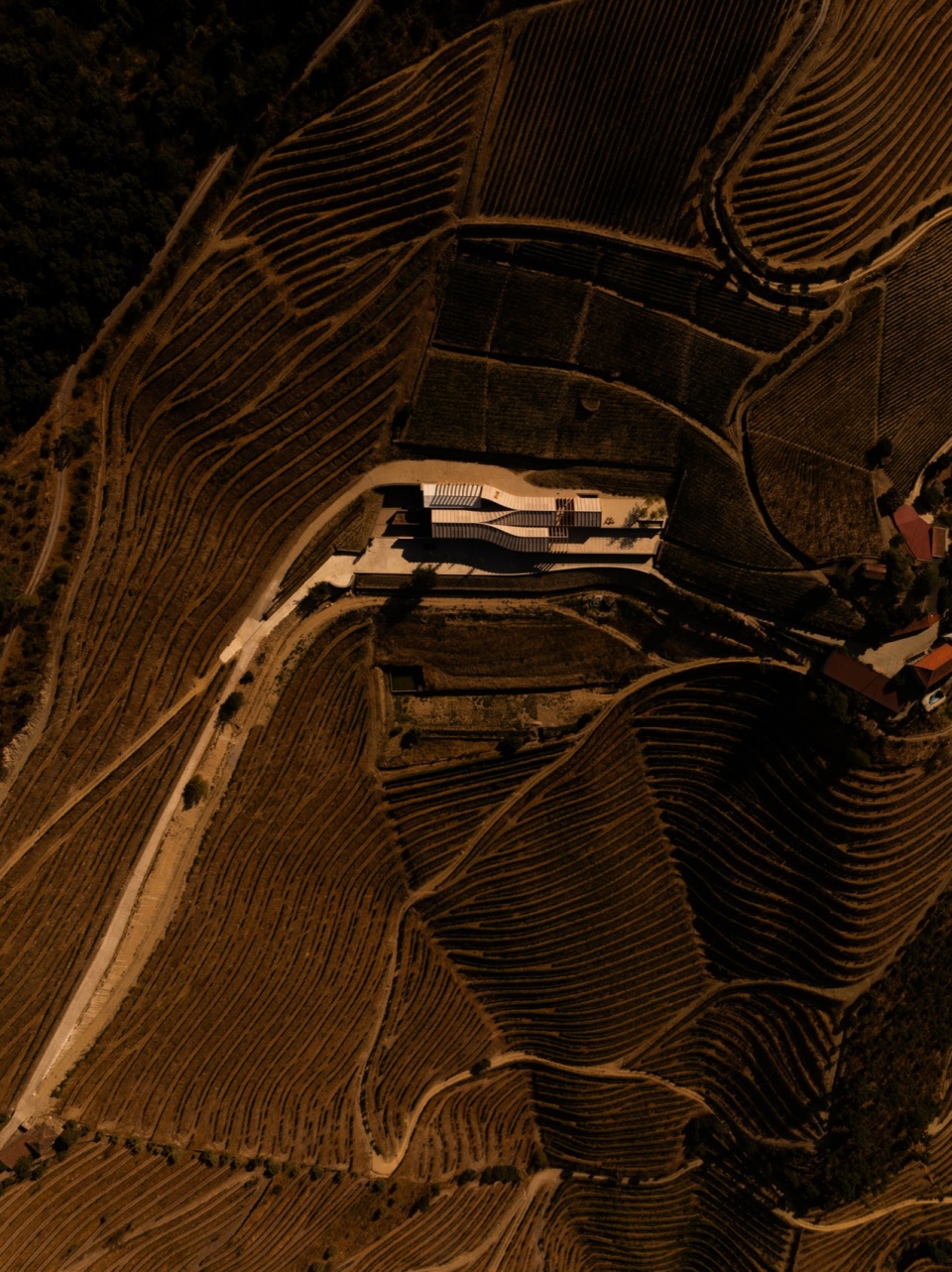 The horizontal curvilinear shapes of the winery and the circuits between areas mirror the zigzags of the vineyards in the surrounding hills and valleys. However, we avoided literally quoting the landscape, compromising daily routines, circulation and communication. On the contrary, the downward movement of the building on the terraces of the land reflects its internal mechanics, where the winemaking process takes place by gravity, a common procedure on the banks of the River Douro. The gravitational wine production system, so characteristic of the region, is demonstrated here with its current operational capabilities. The configuration of the building is therefore a set of interwoven naves that follow the existing topographic slope, replicated on the various interior levels.