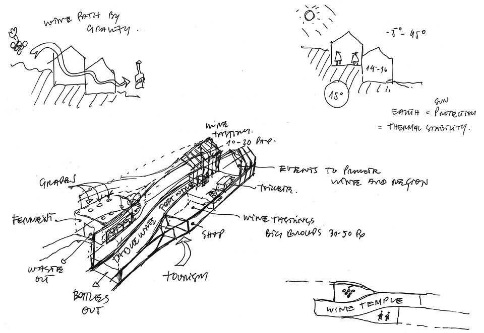 周边自然环境所呈现出的非凡之美、延续千年的人工活动痕迹以及数百年来的酿酒传统,共同促成了这一建筑方案的诞生。项目旨在尊重景观与地方文化的同时,引入创新的建造策略与高效的可持续实践。