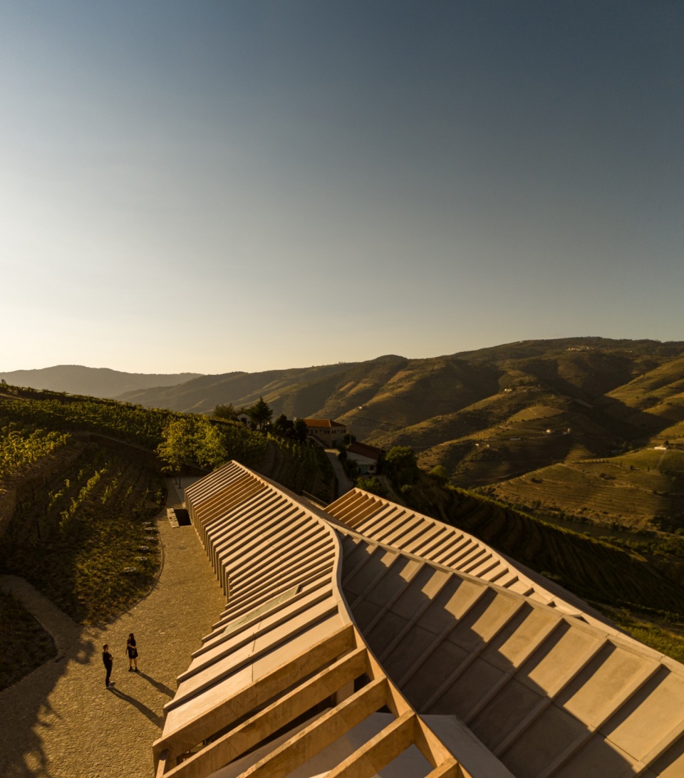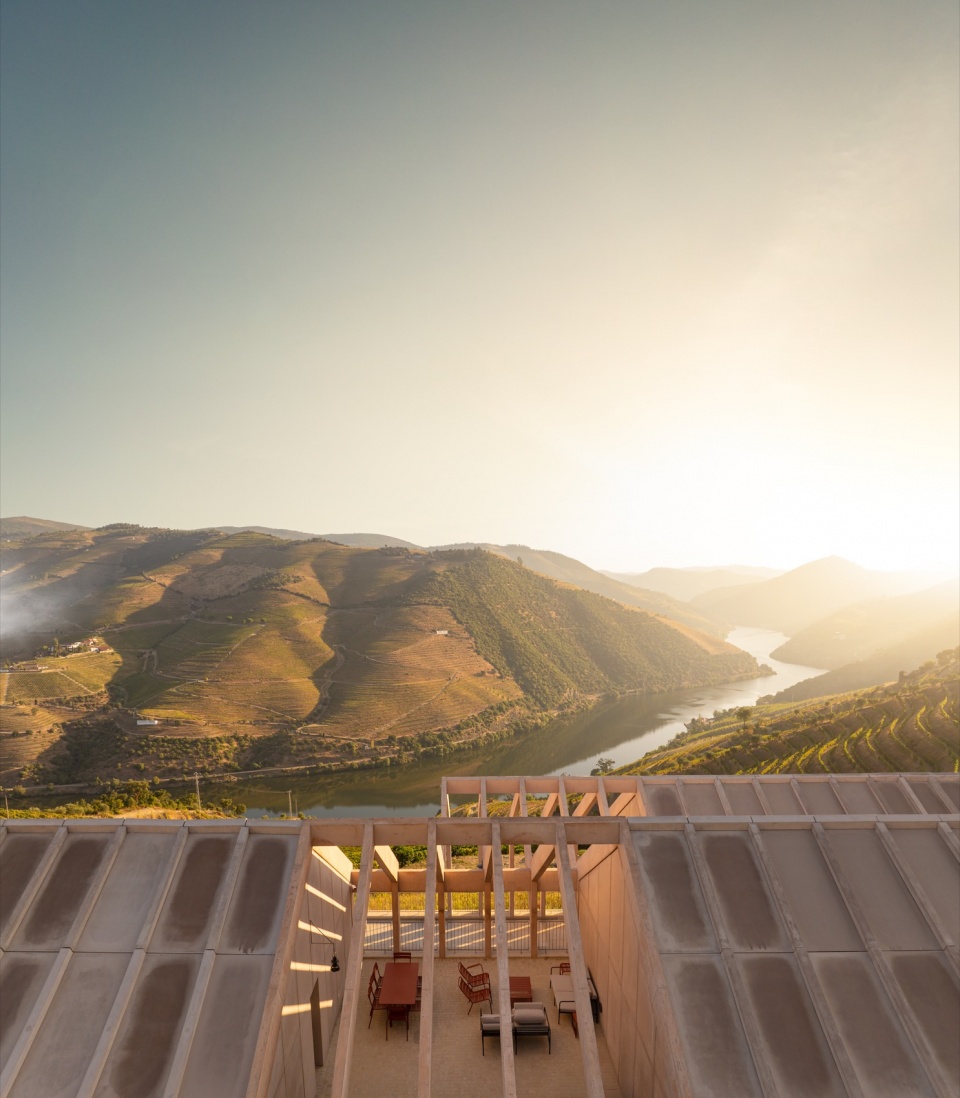 The winery at Quinta de Adorigo was completed in 2024 and is part of a family wine tourism development that also includes a hotel, which is still under construction. This quinta is located in the Alto Douro Vinhateiro, Portugal’s most prestigious wine-growing area, listed by UNESCO as a World Natural and Cultural Heritage Site since 2001.