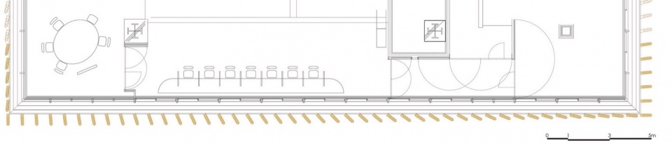 作为解决方案,我们提出了一个对日本传统建筑进行现代化诠释的工作场所:以类似檐廊的过渡区域环绕居住空间,居住空间则用隔扇、拉门等可灵活变化的隔断进行松散分隔。