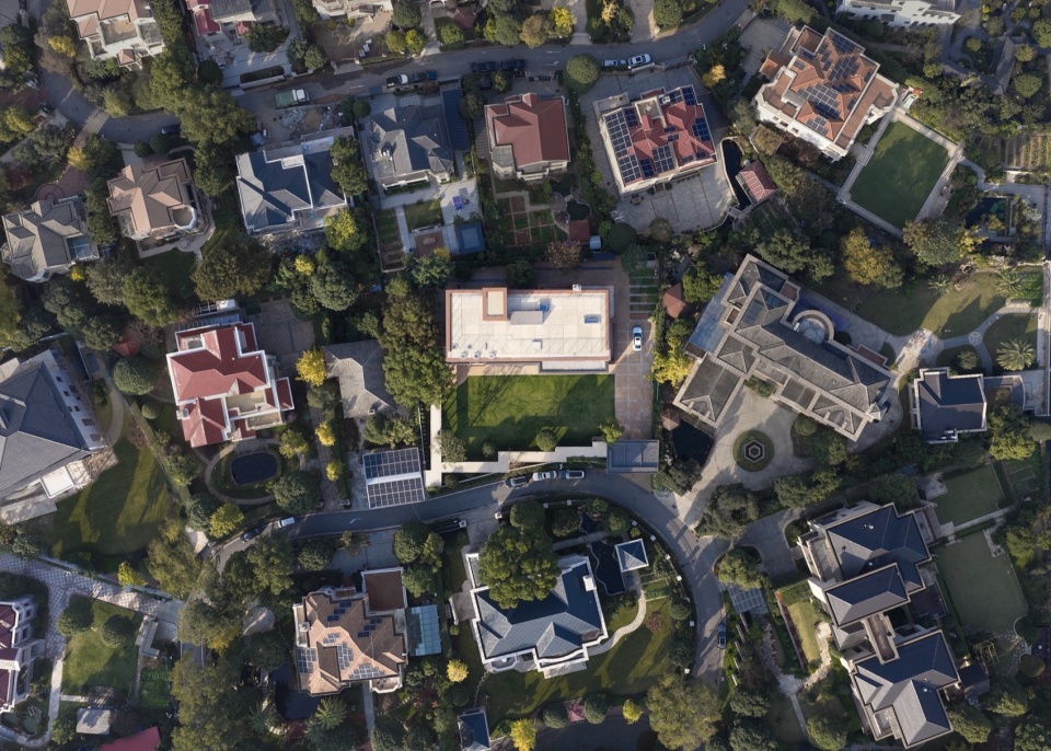 项目始于一次决绝的告别:业主在找到我们前两年便推倒了场地上一栋欧陆风旧宅,这一行为本身即是对无根形式与消费符号的摒弃。我们面对的,是一片清空的场地、一个严格沿用旧宅红线的轮廓限定,以及几棵原地生长的树木。这一轮廓限定定义了创作的边界。在约2000平方米的限定范围内,我们的首要策略是“让”与“留”:以紧凑姿态将风雨廊与宅院入口贴边布置,从而在用地中央“让”出开阔草坪,为家庭生活预留活动场地。