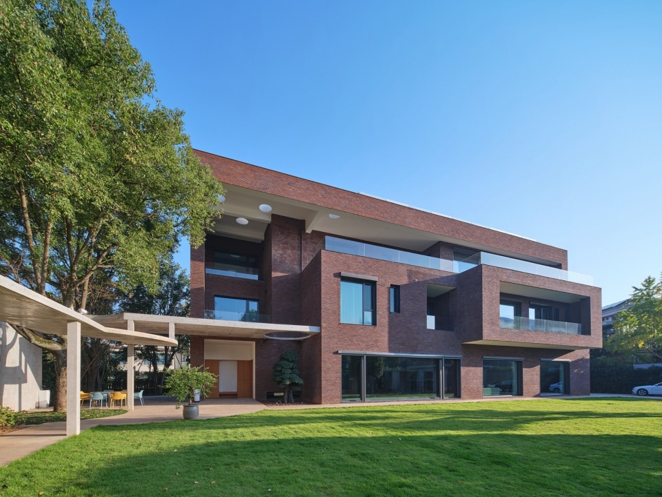The rejection of the former decorative language demanded particular care in material selection. We chose handmade, reddish-brown clay bricks as the building’s skin. This choice carries multiple layers of meaning. First, brick is an honest material, imbued with the warmth of craftsmanship and the texture of time; its color slowly evolves under sun, rain, and wind, breathing alongside nature—fundamentally at odds with architecture that pursues instant visual gratification. Second, within a villa neighborhood dominated by smooth, polished surfaces, the brick’s solidity and restraint lend the building a quiet sense of placeness. It does not call attention to itself, yet through its warmth, tactility, and temporal depth, it acquires a calm gravitas, engaging in a gentle and enduring dialogue with the surrounding greenery.