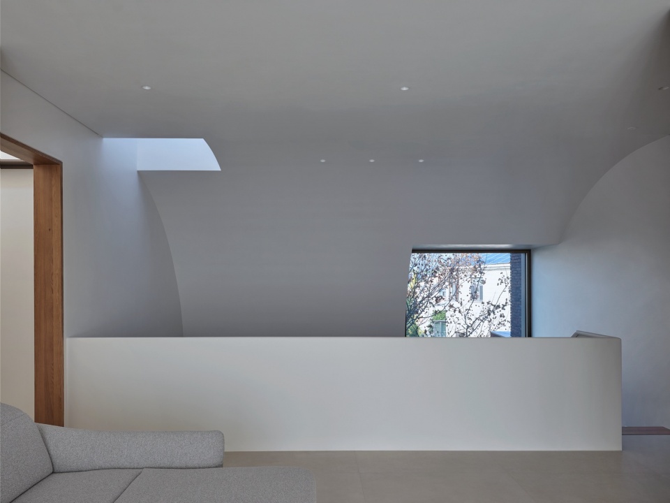 When a mother softly calls from the dining area below, her voice naturally rises through the chamber, clearly reaching children playing on the upper floors. Conversely, parents in the third-floor master living area can effortlessly “overlook” the activity of the children below. Space becomes an invisible bond that sustains family intimacy—a warm medium of attention that does not intrude. This is a domestic reinterpretation of Le Corbusier’s dynamic experience: the promenade is no longer only bodily movement, but also the free passage of sight and sound through vertical space.