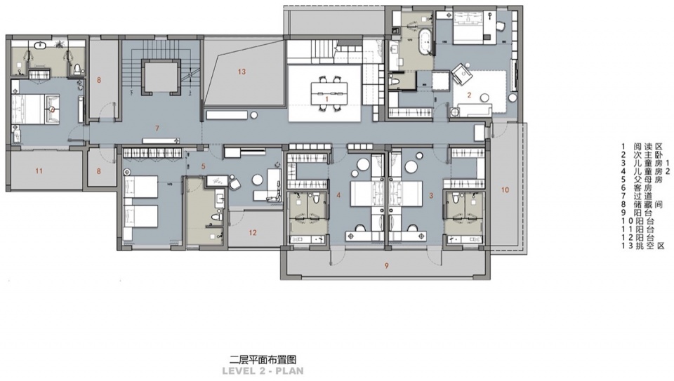 当母亲在一层餐厅轻声呼唤,声音可以自然而然地向上漫溢,清晰地抵达在二层、三层玩耍的孩子耳中。反之,位于三层主卧起居室的父母,也能通过这个“腔体”,轻松地“瞰”见二层儿童活动区的动静。空间,成为了维系家庭情感的无形纽带,一种非打扰的、温暖的关注媒介。这是对柯布西耶“动态体验”理念的空间流动性一种家庭化转译——漫步不仅是身体的移动,更是视线与声音在垂直维度上的自由穿行。