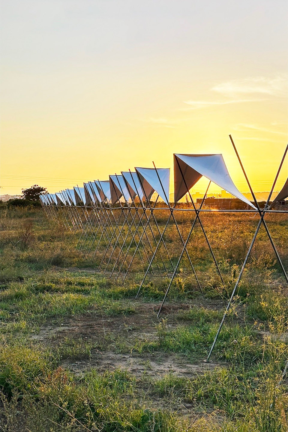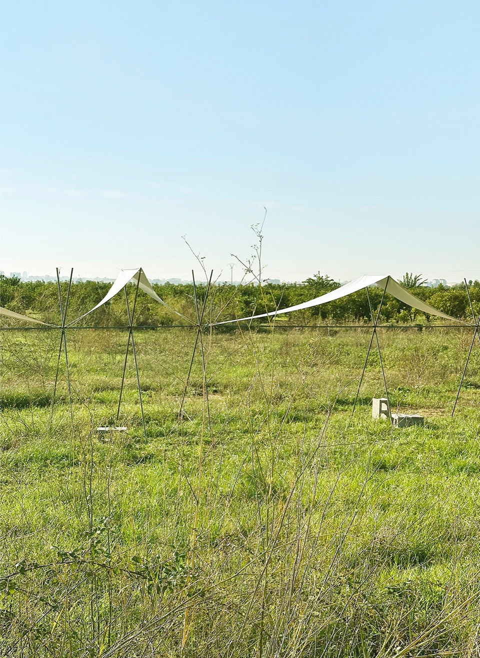 With its reversible nature and minimal ecological footprint, the installation offers a framework for contemplation and reinterpretation of the landscape. It invites the community to explore it, inhabit it, and embrace it from a renewed perspective. Far from imposing itself, the intervention complements the landscape: it integrates with the furrows, follows the direction of irrigation, and allows itself to be shaped by the wind, the sun, and the passage of time.