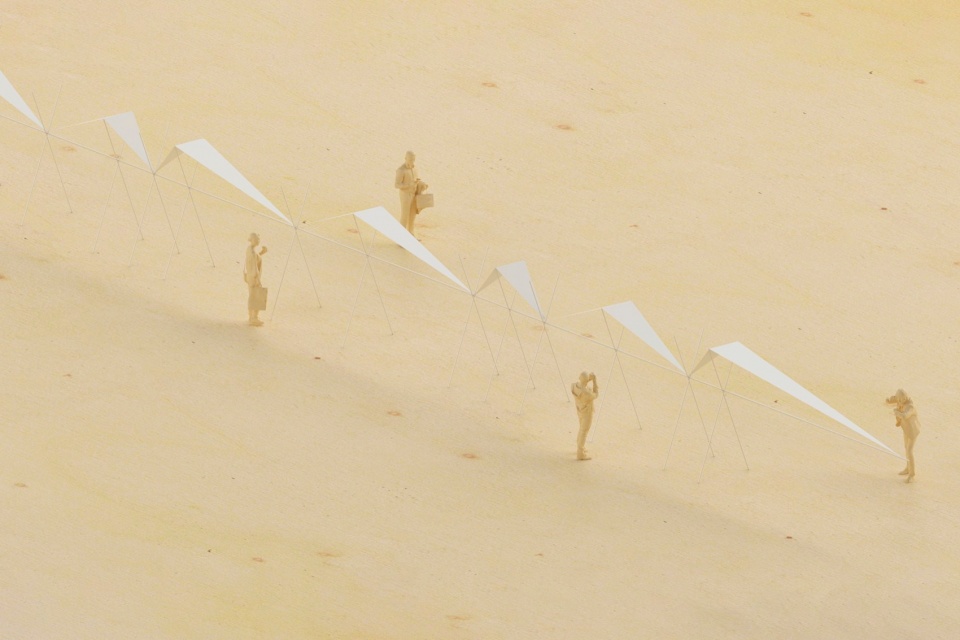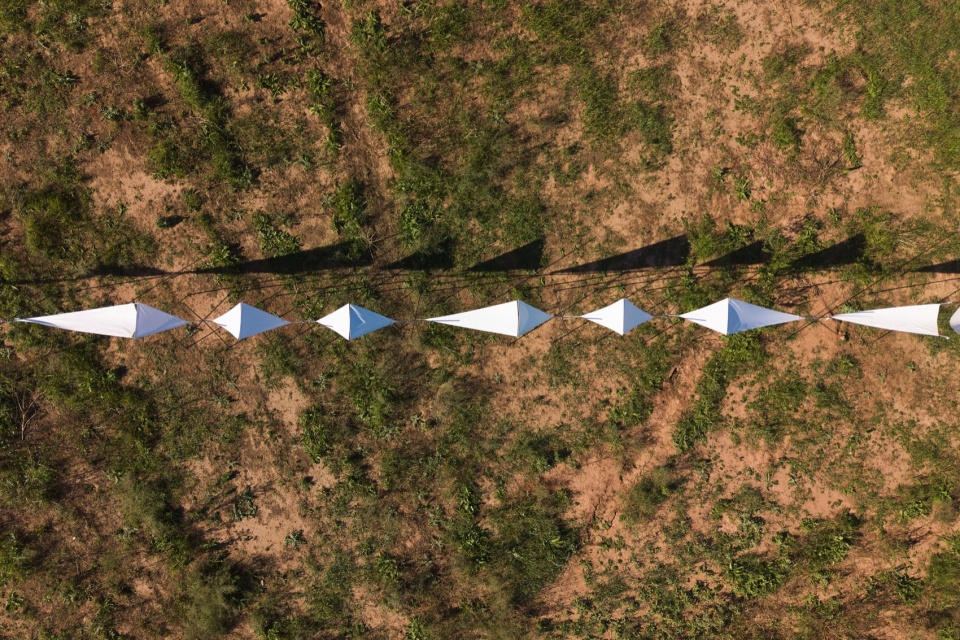 凭借其可逆性和极小的生态足迹,该装置为人们提供了一个思考和重新诠释景观的框架。它邀请社区成员以全新的视角去探索、体验和拥抱这片土地。这项干预措施非但没有突兀地强加于人,反而与周围景观相得益彰:它融入田埂,顺应灌溉方向,并任由风、阳光和时间的流逝塑造自身。
