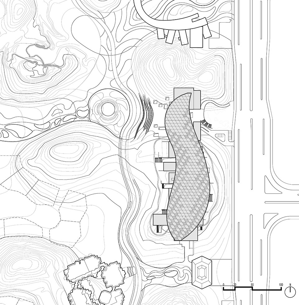 The Garden Art Museum was the main venue of the 12th China (Nanning) International Garden Expo. There were two small hills on the site, in respect to the existing terrain, the design team embedded the first floor of the building in the hills to minimize its volume, while arranging the small exhibition halls as scattering clusters on the hillsides, which create a unique landscape with strong vernacular features.