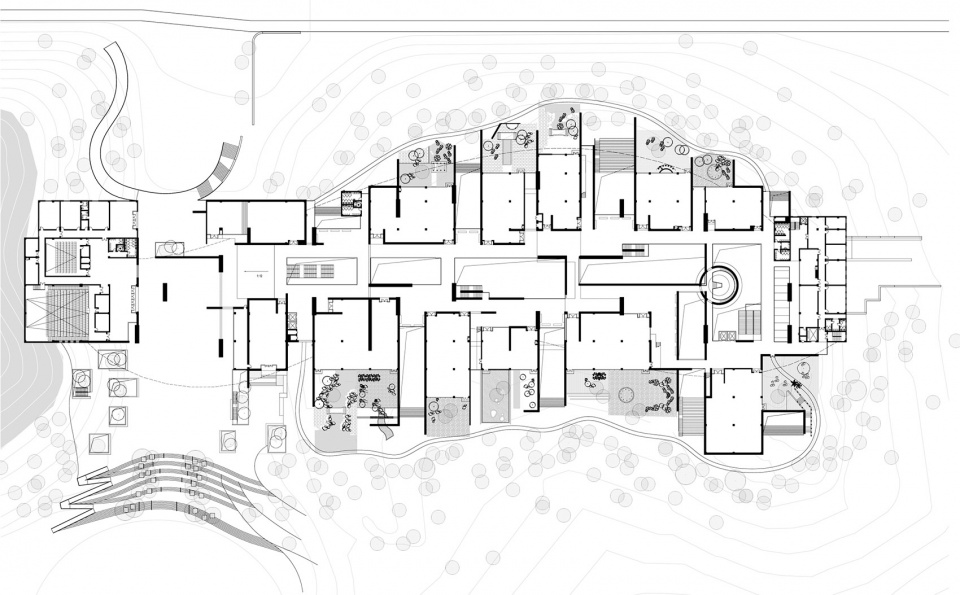 The boundary between the outdoor and indoor spaces is blurred by taking advantage of the existing terrain and considering both hills as gardens for exhibition. Each exhibition hall has a small natural garden for outdoor exhibition. This integrated design extends exhibiting space into natural settings, inviting visitors to appreciate the beauty of gardens in the natural environment.