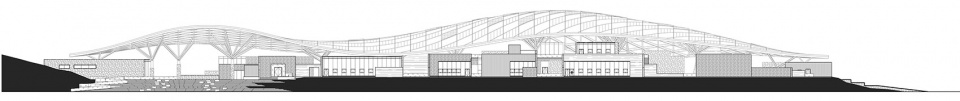 A huge steel-structured roof was designed to echo the natural landscape