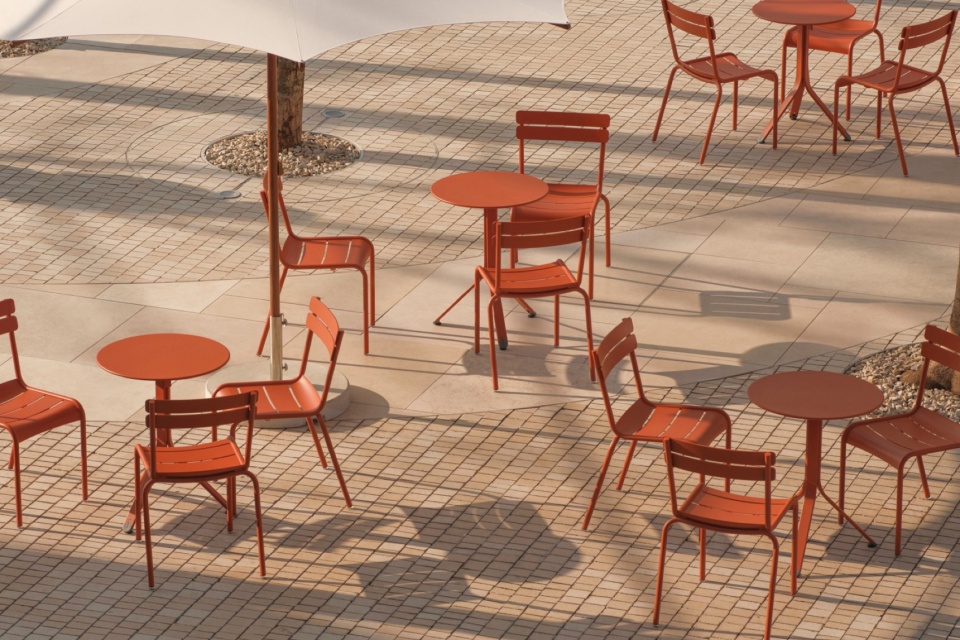 Beneath parasols in crisp, vivid colours,