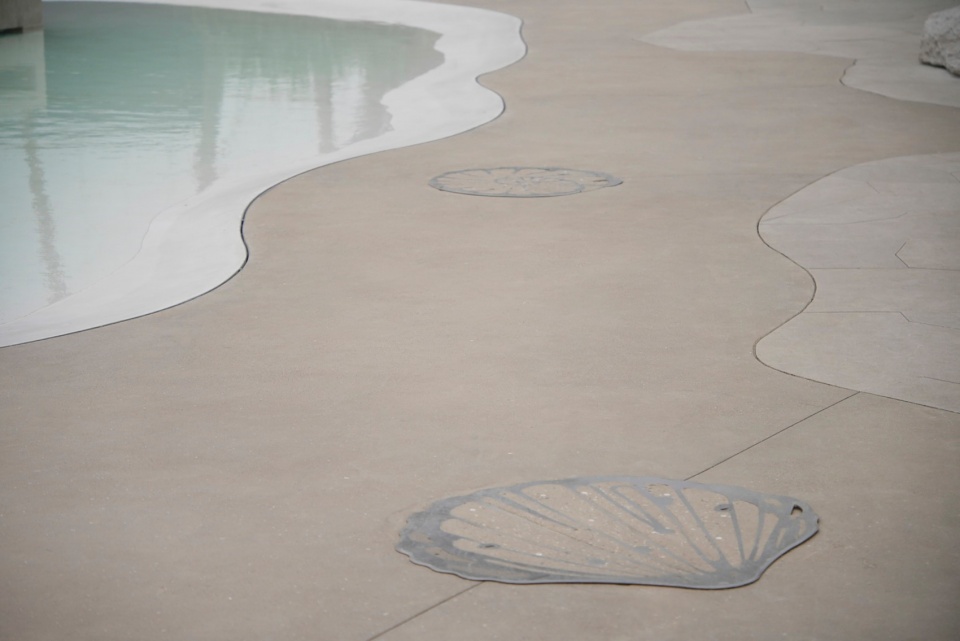 ▼仿造海滩砂石的地面,Beach-like gravel paving