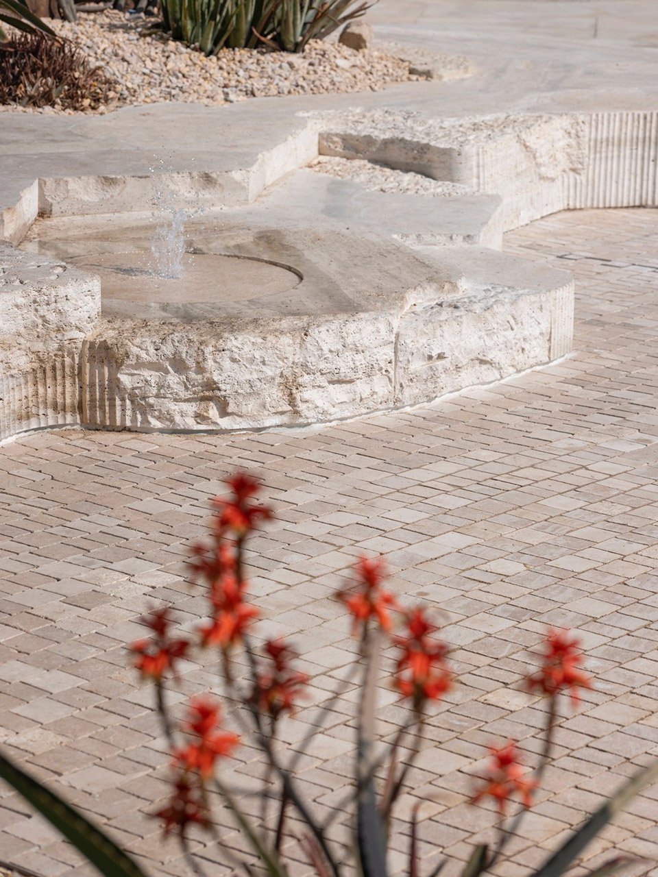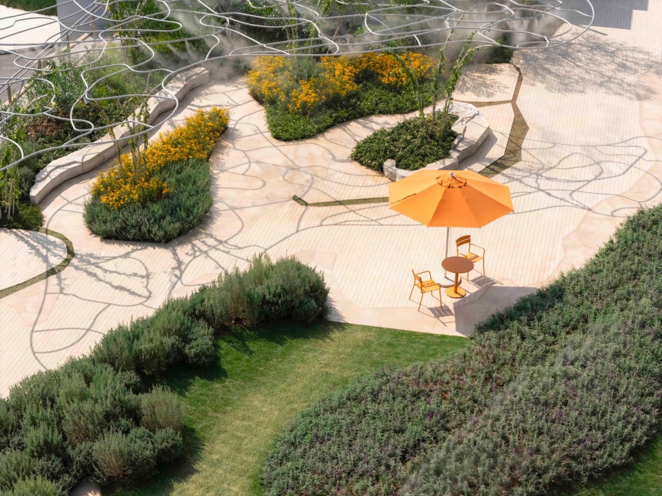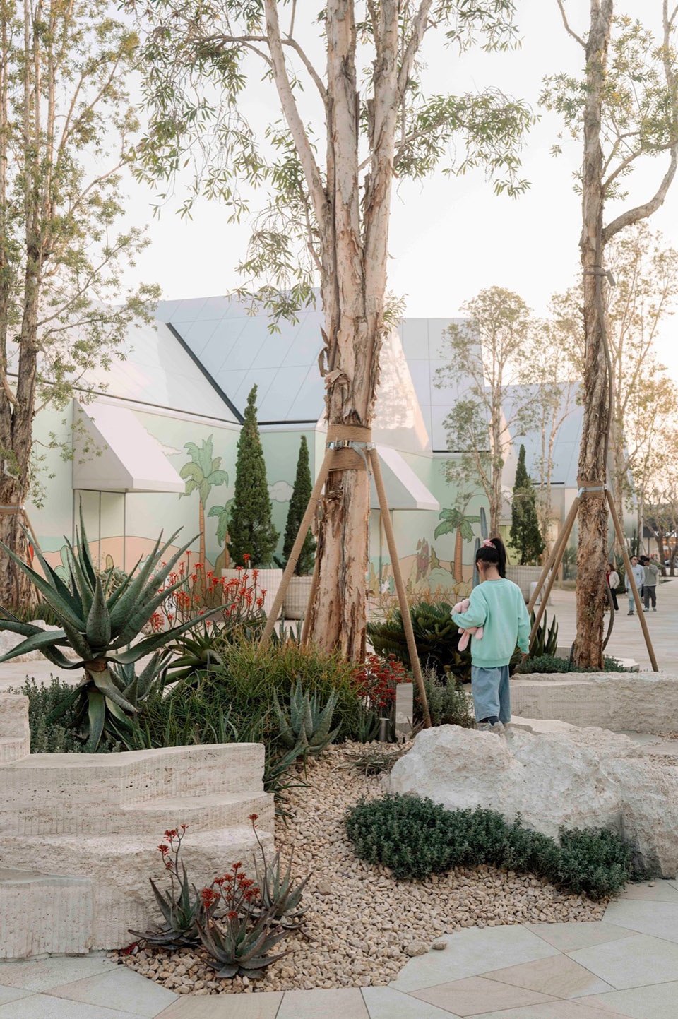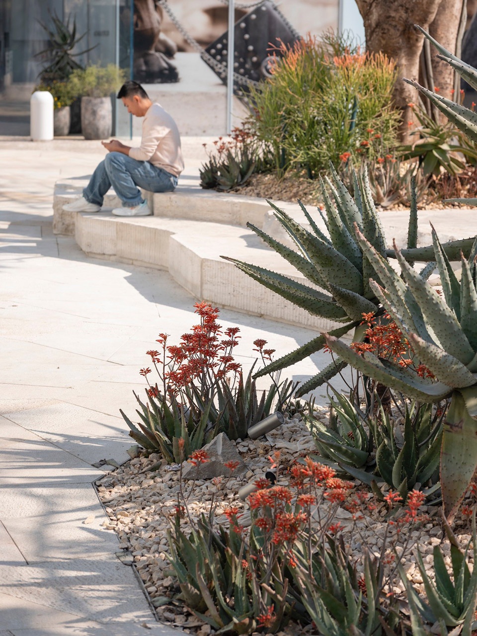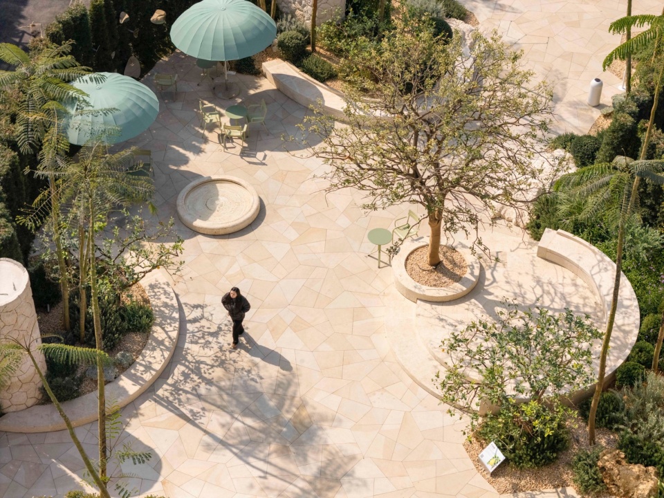 ▼各种材料组合以及色彩绚丽的芦荟主题花园,A vivid aloe-themed garden, composed through layered materials and vibrant colour