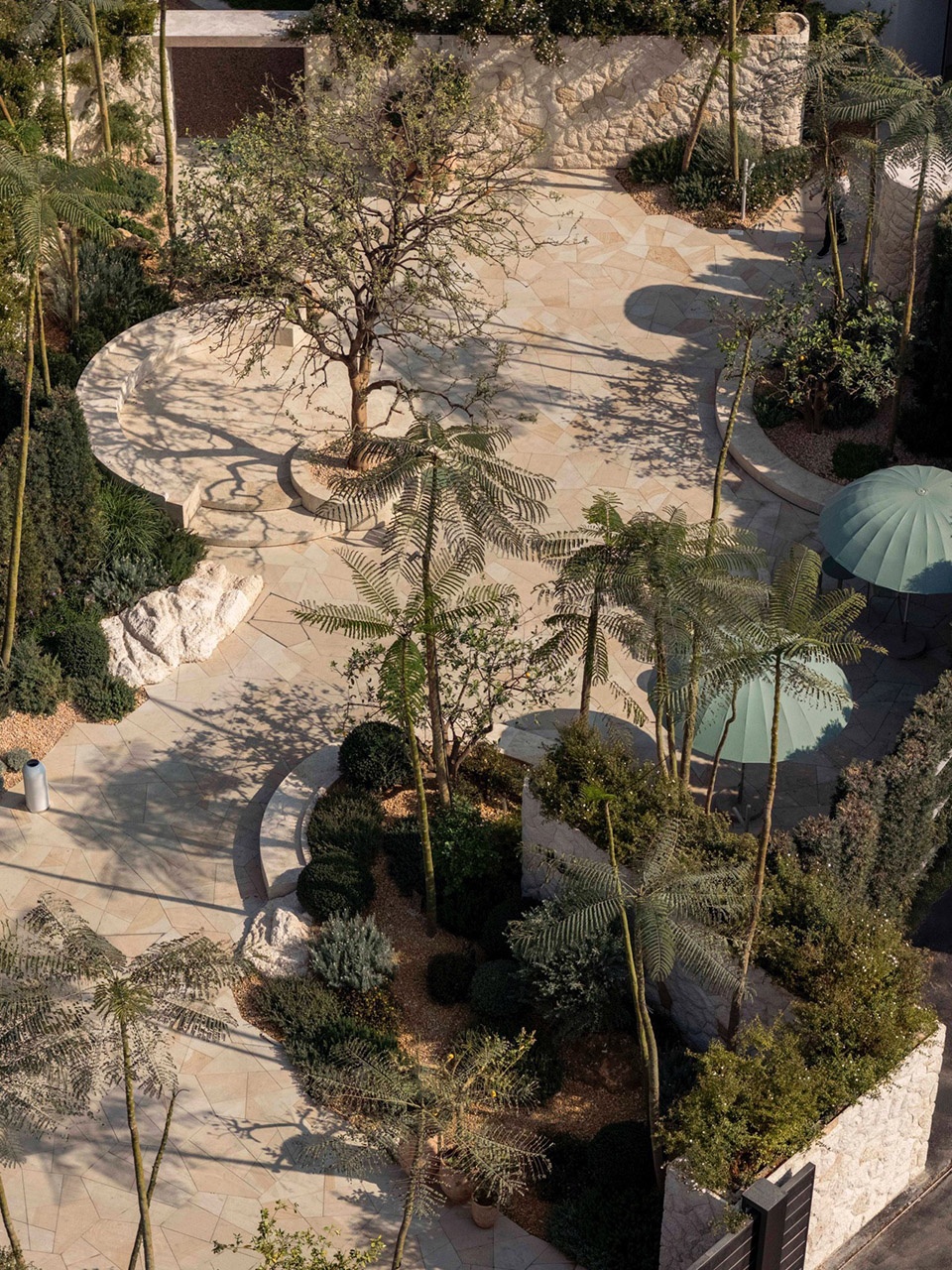 At approximately 200 metres in length, the Outer Ring forms the project’s primary civic edge, shaping two signature urban frontages. The east reads as more coastal and atmospheric, while the west is quieter and more refined. Four gateways punctuate the perimeter- each composed as a distinct arrival scene through site-specific art, bespoke paving, and oversized planting gestures- creating clear landmarks and lasting first impressions.