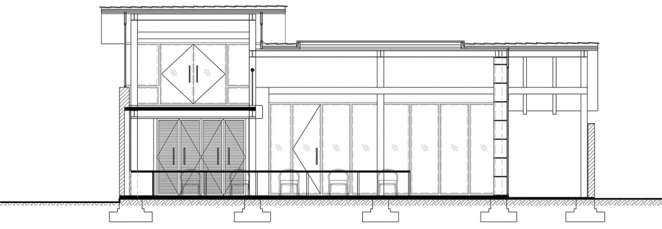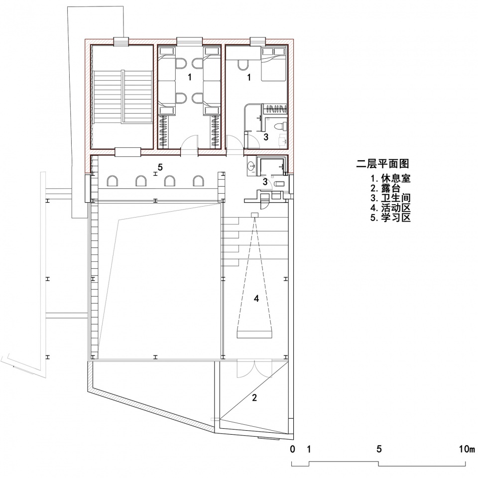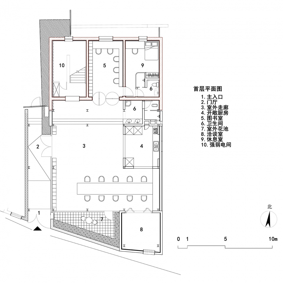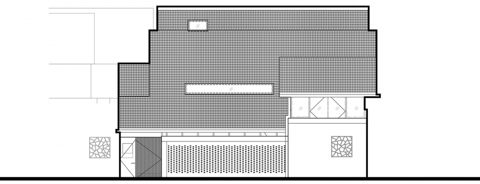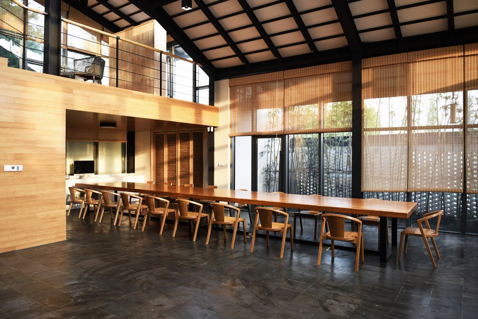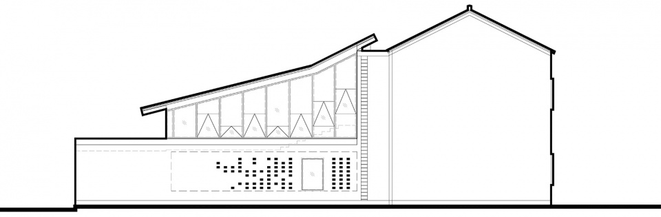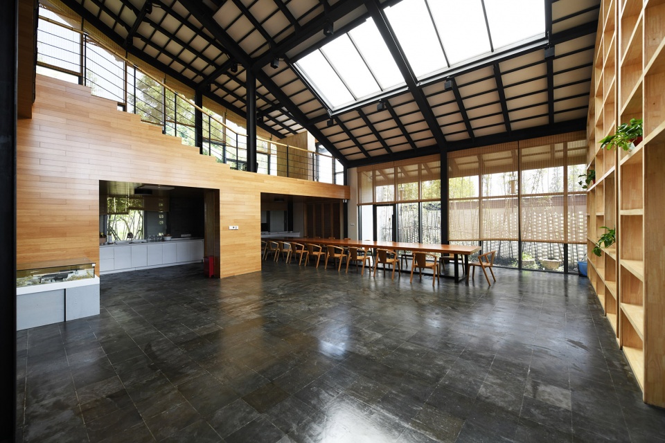Secondly, new plan is made to ancillary rooms in poor condition, the original kitchen, and storage rooms. The design team needs spacious working space, so they adopted the strategy of “shelter all the poor people to make them happy” and covered the courtyard. In order to reduce the influence of big roof on the rural texture, the roof is designed three folds to reduce the volume of a large roof. To showt new construction honestly, the roof is made of entirely new steel and metal tiles, same method is also applied in Kunqu Opera Academy.