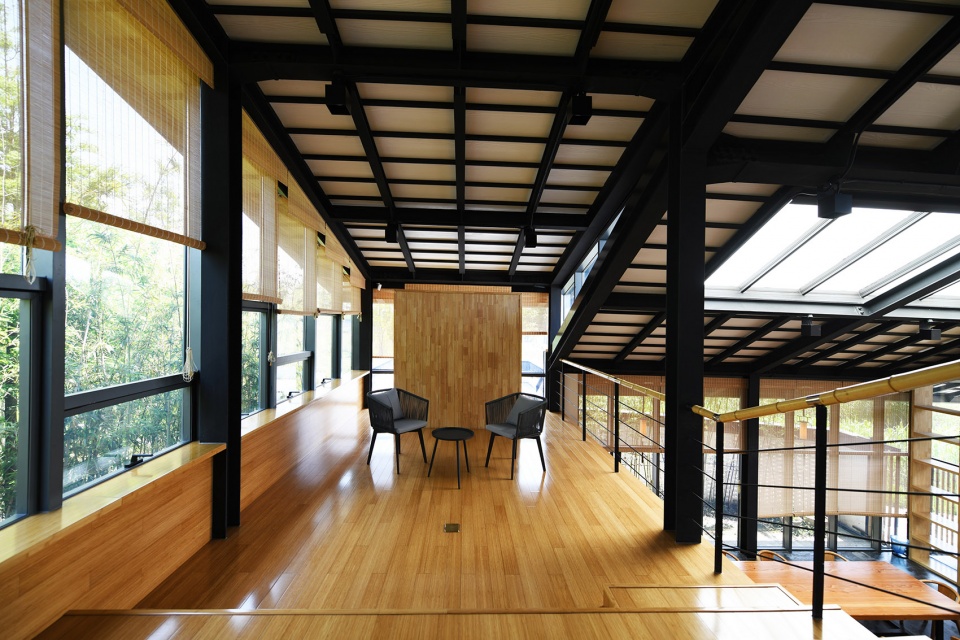 The interior design is entirely new. Old corridor on the second floor turns into a workbench, above the new kitchen is a small theater with a salon. Below the salon stepssteps is air conditioning. artisans cut air-conditioning vent holes on the bamboo floor by hand. The boundary between the old and new houses is clearly visible, witnessing the organic growth between the two buildings. And the whole design of the project is woven into the texture of Xibang Village. It is still picturesque, small bridge snuggled up to farm houses, the original almost abandoned old village revives.