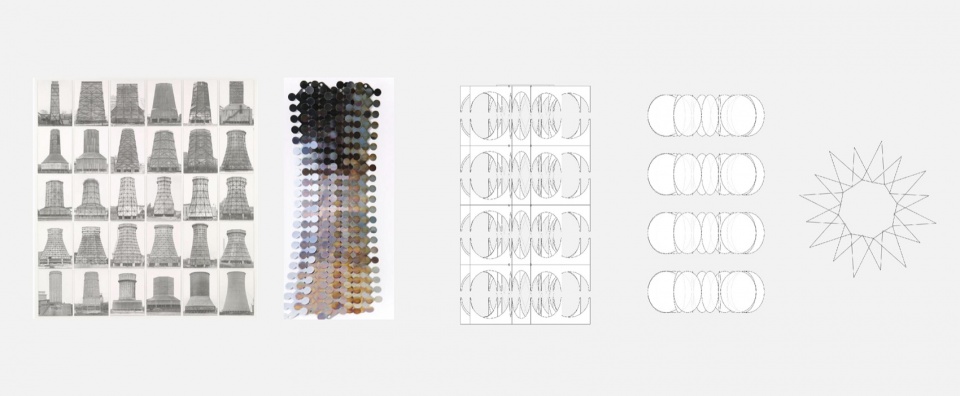 首钢园的硬核环境令人震撼。面对巨大的工业遗存,我们萌生了用交叠金属片编织形式的想法。在深化过程中,材料演变为一轻一重两种,组合方式也从单纯的编织发展为折纸与套叠的结合。所有这些想法自然整合,最终呈现出完整的形态。
