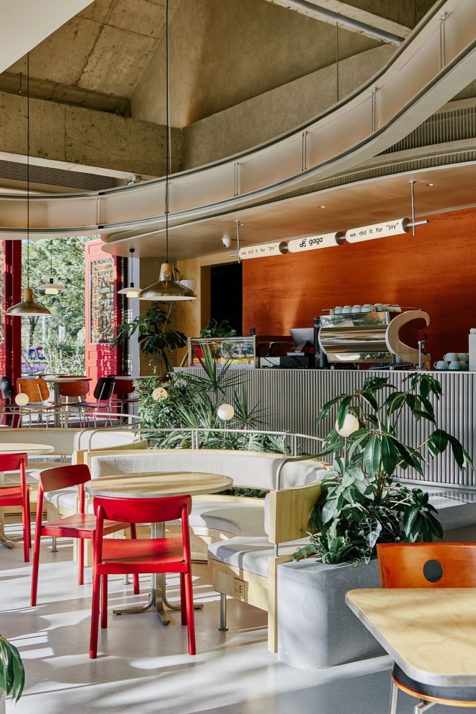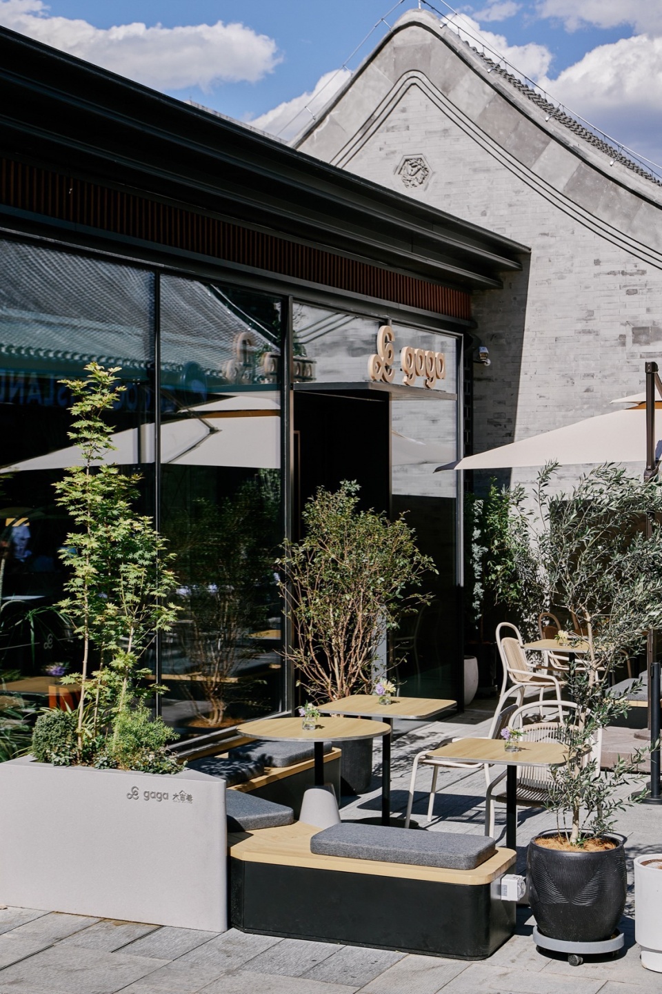 The design concept of the new gaga restaurant is creating a relaxed and earthy vibe, like stay in the living room. Multiple pathways connect outdoor and indoor spaces, echoing the commercial atmosphere of the neighborhood.