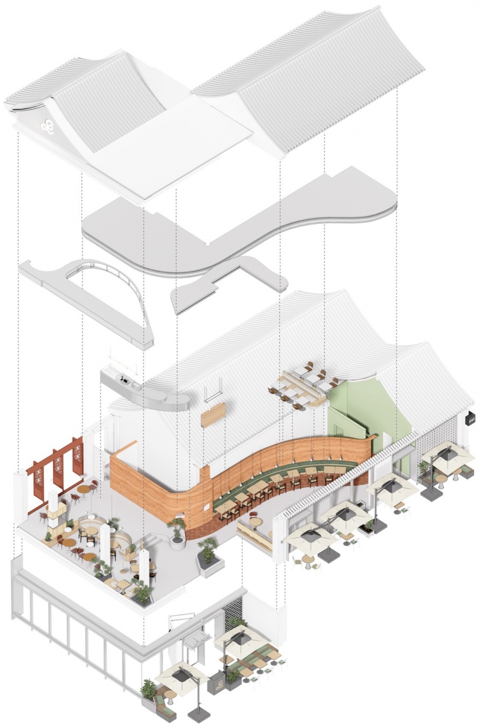 ▼ 餐厅轴侧图,Axonometric diagram