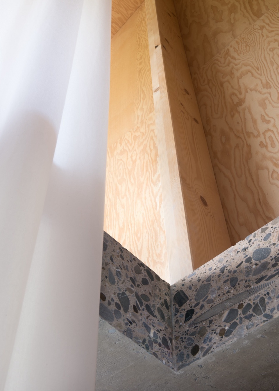 这套公寓由前任业主于2011年完成改造,该次翻新在很大程度上改变了原有乡村体量的物质构成与空间属性。原始的天花木梁被混凝土楼板取代,木结构被砌体墙体所替换,屋顶结构也被层压木梁(glulam)所取代。