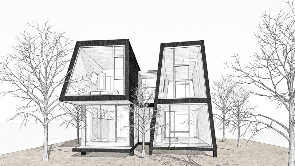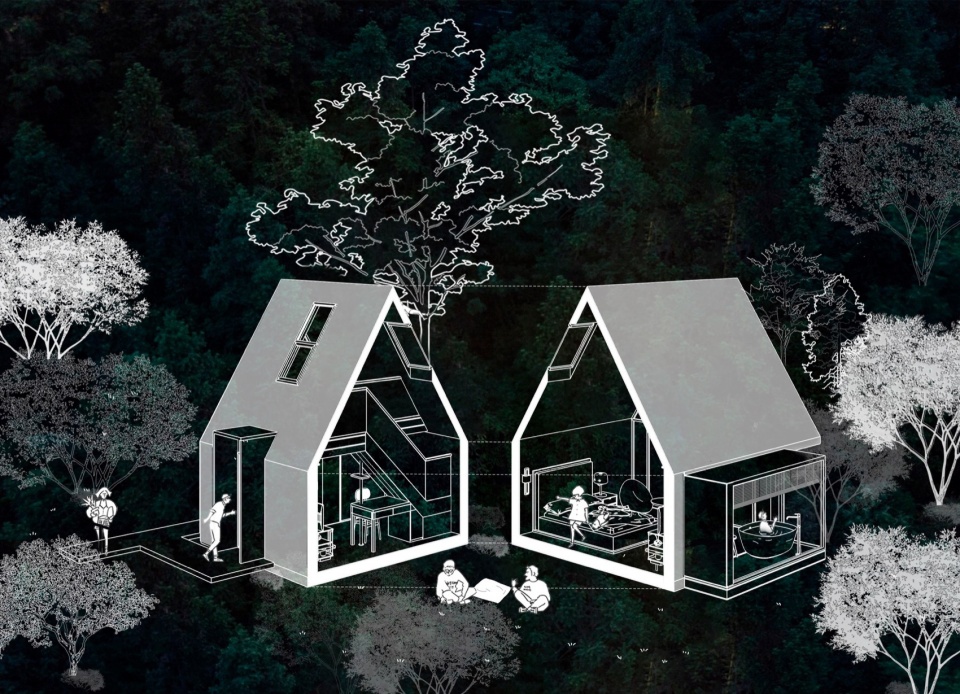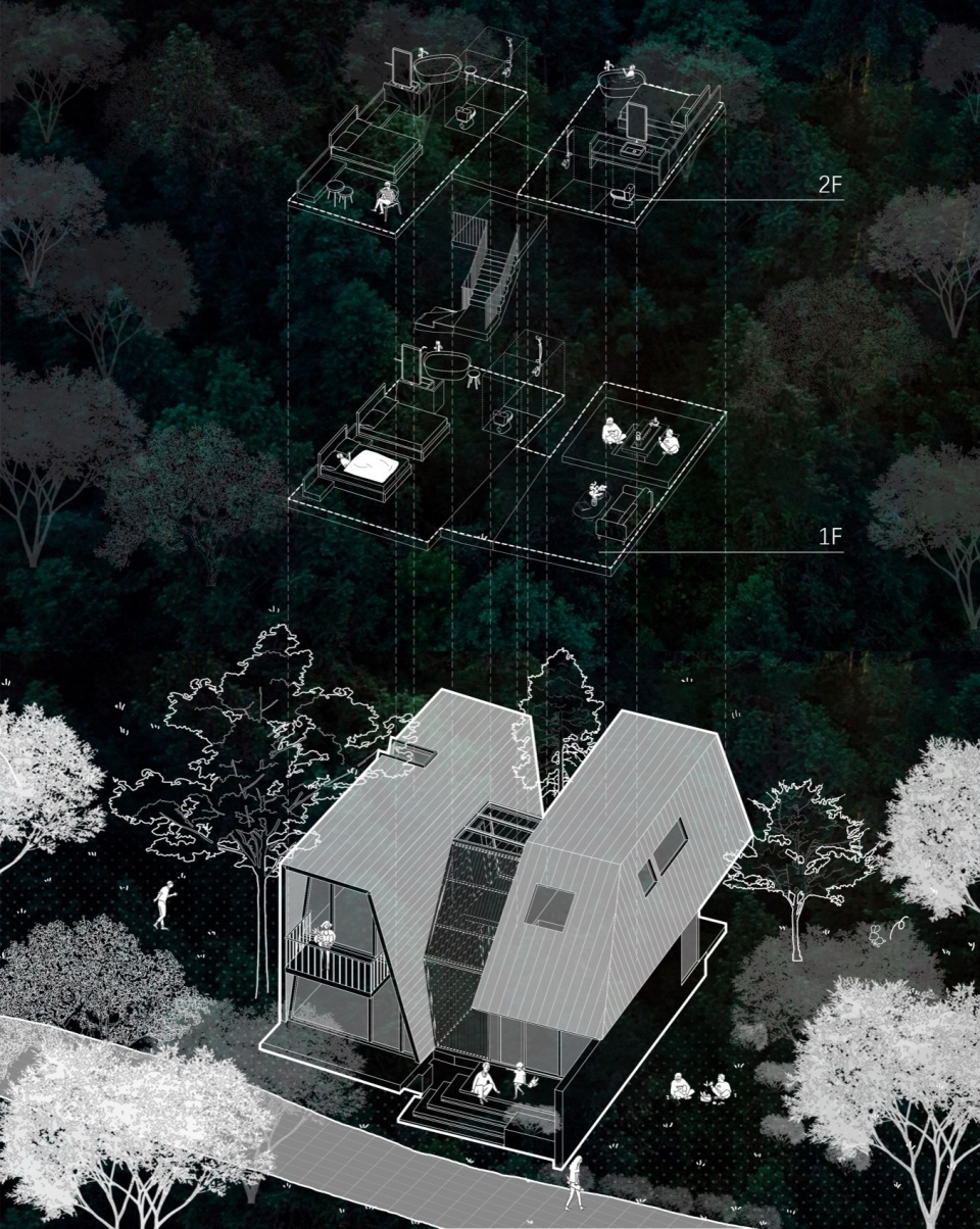 The Butterfly Forest mountain dwelling cluster is our attempt, using “Wild Narrative,” to write a wooden-textured letter to weary urbanites. It settles humbly among the woods with dark geometry, borrows skylight and cloud shadows for its eaves, and invites stream winds and tree whispers into its quarters. When the warm lights glow in the secluded valley, those scattered “dark cocoons” are no longer cold architectural masses but warm nests the forest opens to humans. Here, every soul can shed its heavy shell like a butterfly, allowing body and mind to undergo metamorphosis among the tree shadows and starlight.