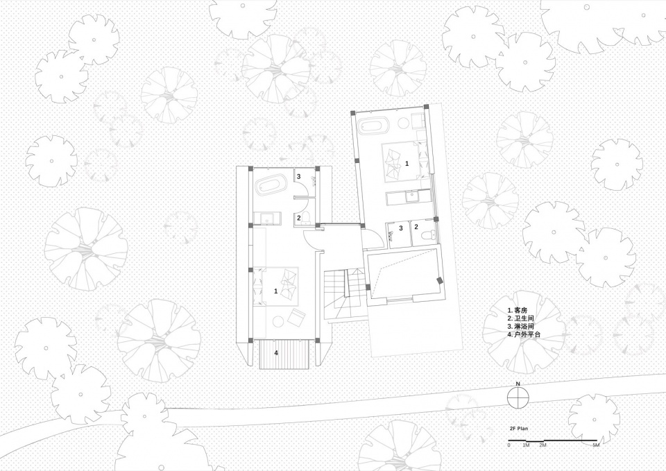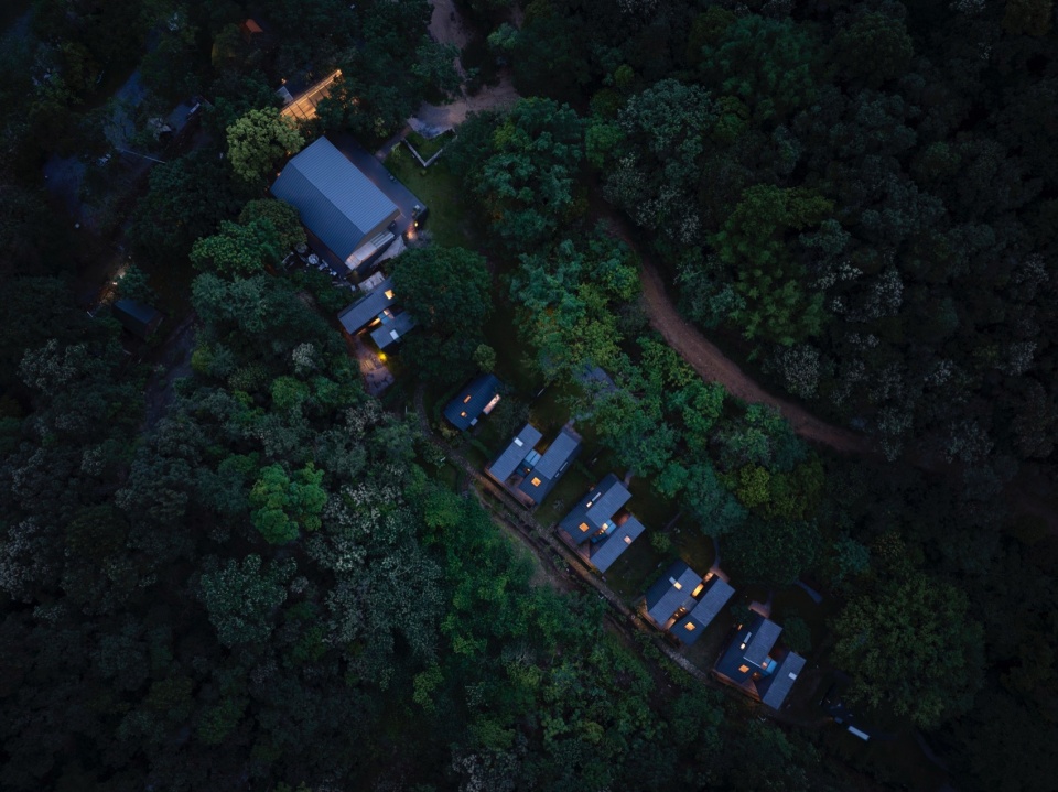 Floating in a Green Sea: The guest buildings are surrounded and gently engulfed by layers of dense, lush forest vegetation. We preserved the original vegetation to the greatest extent; the architecture is not the dominator but a humble newcomer, willingly “sinking” into this thriving greenness.