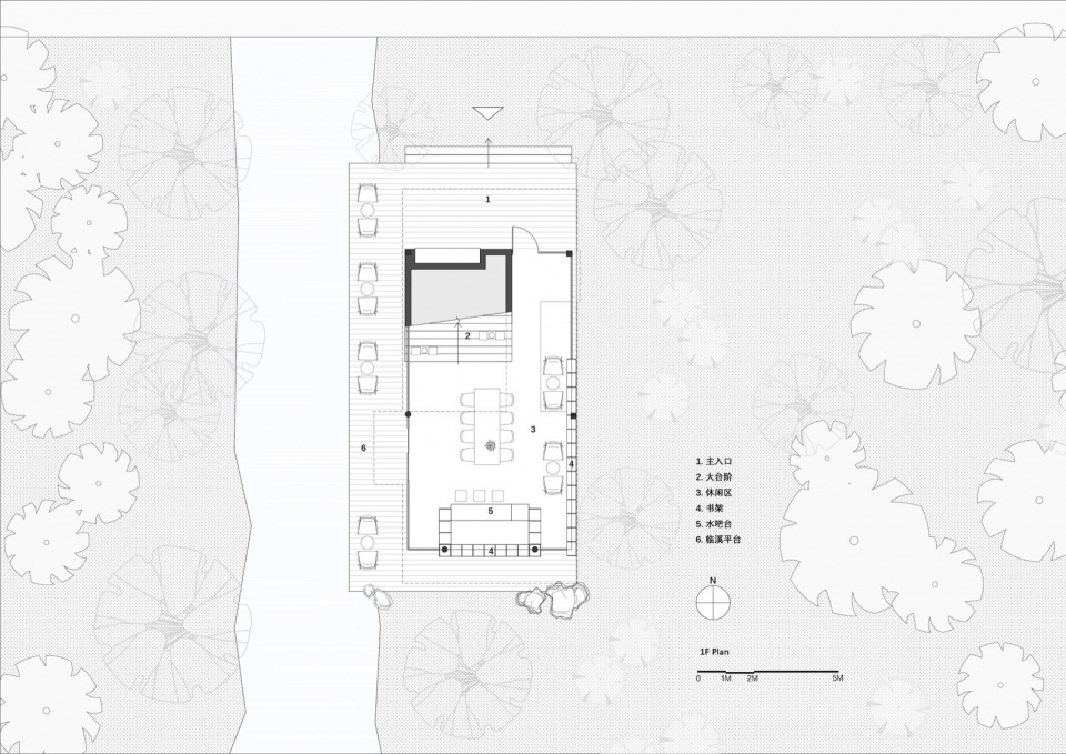 Streamside Viewing: Comfortable reading and resting areas are arranged, primarily facing the stream direction. By removing the conventional “façade,” sight and breezes can flow into the interior unobstructed. Sitting by the water, one experiences the babbling stream, rustling leaves, mountain winds brushing the skin, and faint insect and bird songs—a fully immersive natural soundscape for healing.