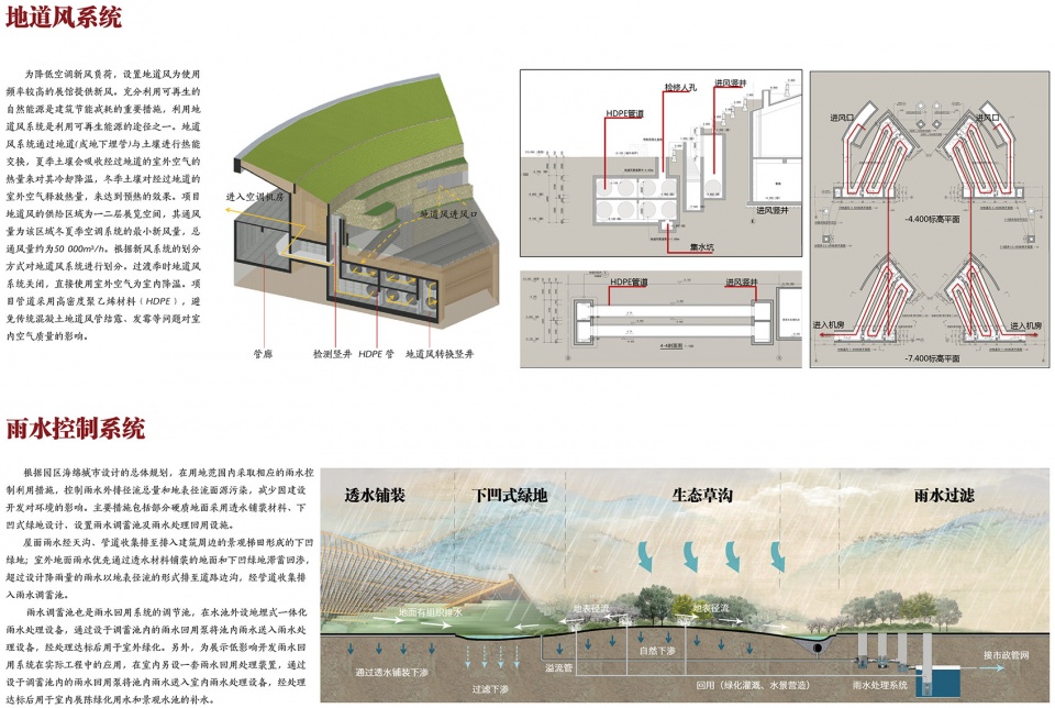▼地道风系统和雨水控制系统