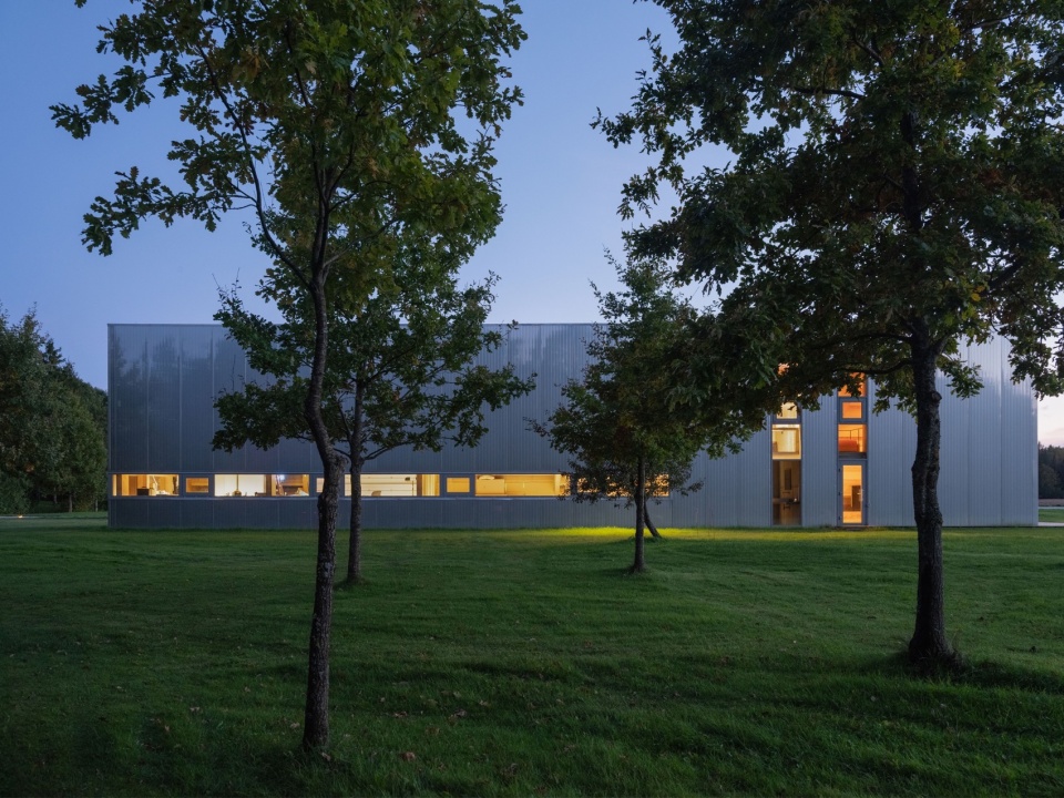 在克莱佩达地区的乌特里艾(Utriai)村,一座新建建筑打破了人们对农用建筑的刻板印象。由 G. Natkevičius & Partners 建筑事务所设计的这一项目,在金属“铠甲”之下,不仅容纳着农业机械,也隐藏着一处可接待访客、供人留宿的温馨空间。