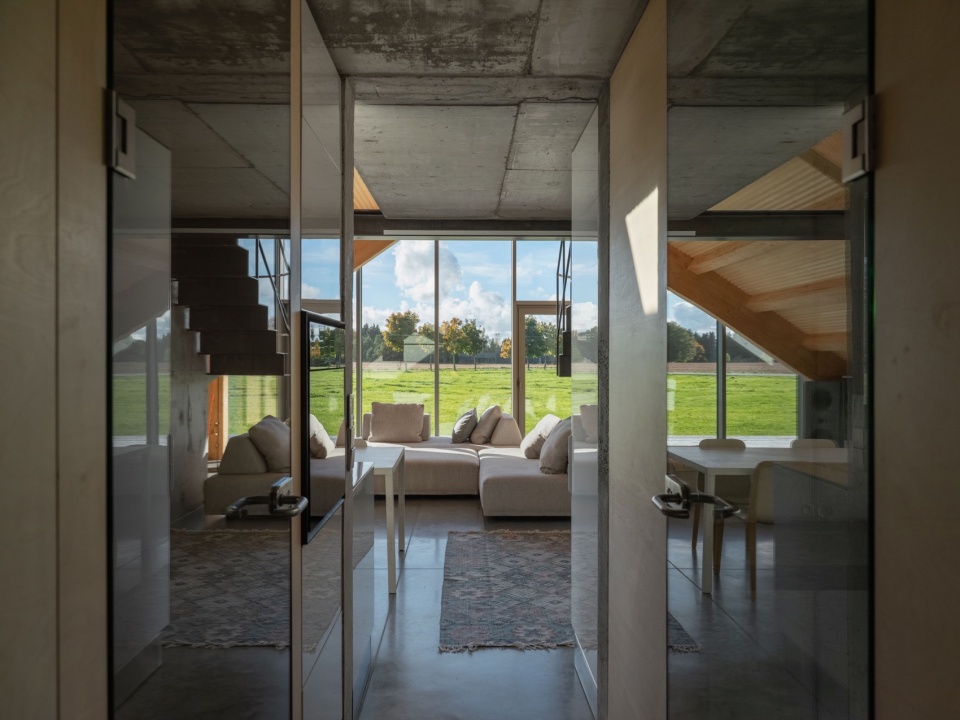 In the village of Utriai (Klaipėda District), a newly constructed object dismantles the stereotypical view of a farm building. The architectural bureau “G. Natkevičius & Partners” presents a project where, beneath a metal “armor,” lies not only machinery but also a cozy space adapted for hosting guests and overnight stays.