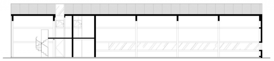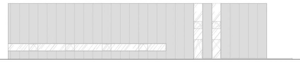 ▼条形窗将建筑分为两段,the strip windows divide the building into two sections.