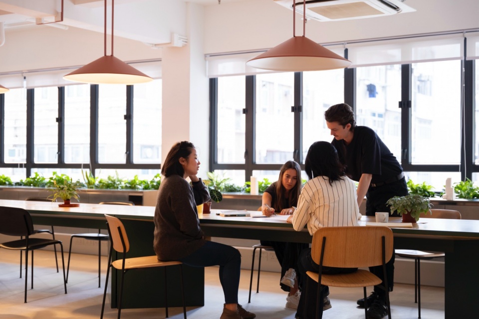 新香港工作室的设计以环境责任与员工福祉为优先原则。在条件允许的情况下,原有室内结构被最大限度保留并再利用,使既有建筑元素焕发新生。材料选择注重低环境影响,包括再生木材、石材与铝材,并辅以低VOC涂层,以改善室内空气质量。