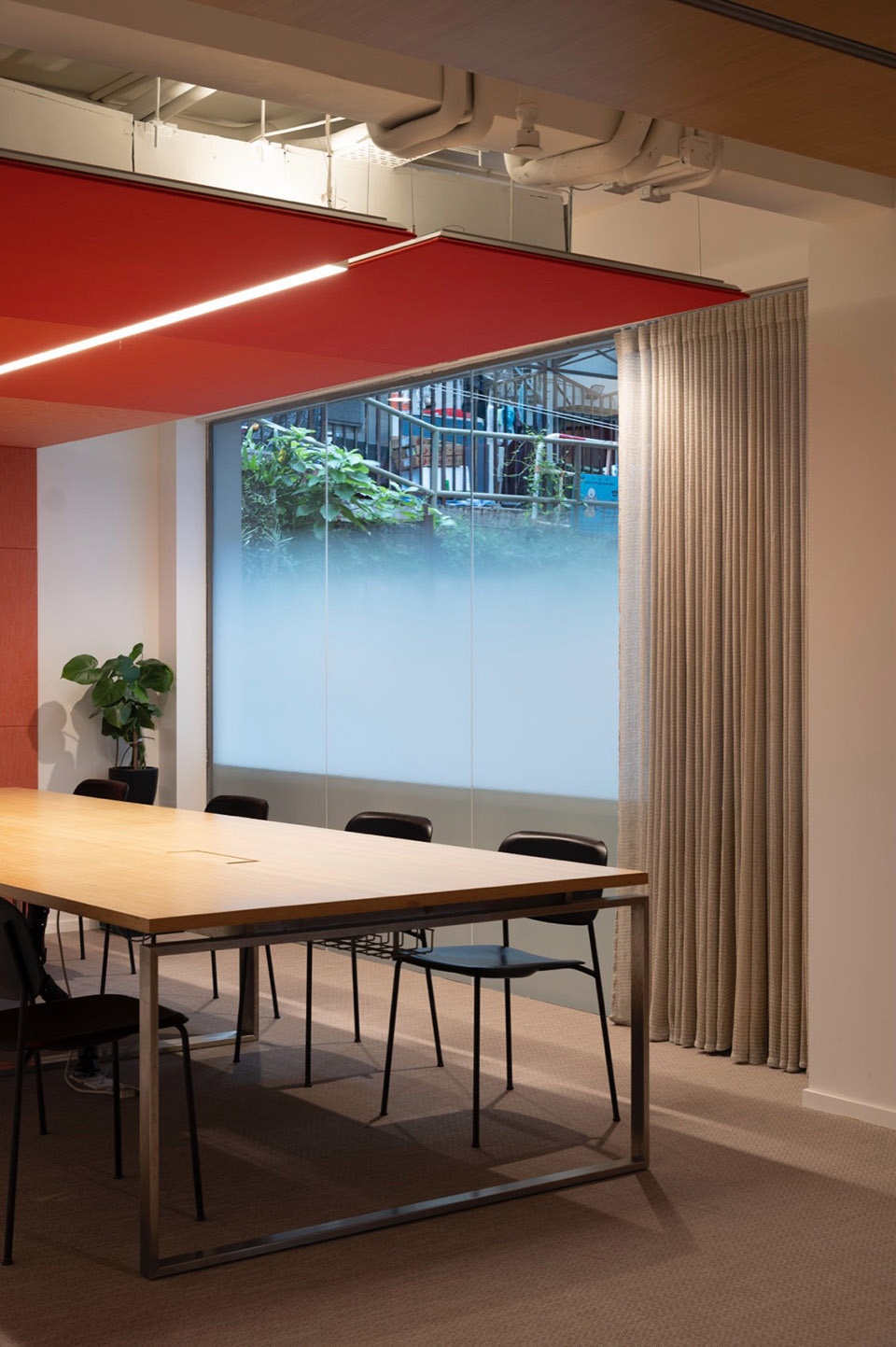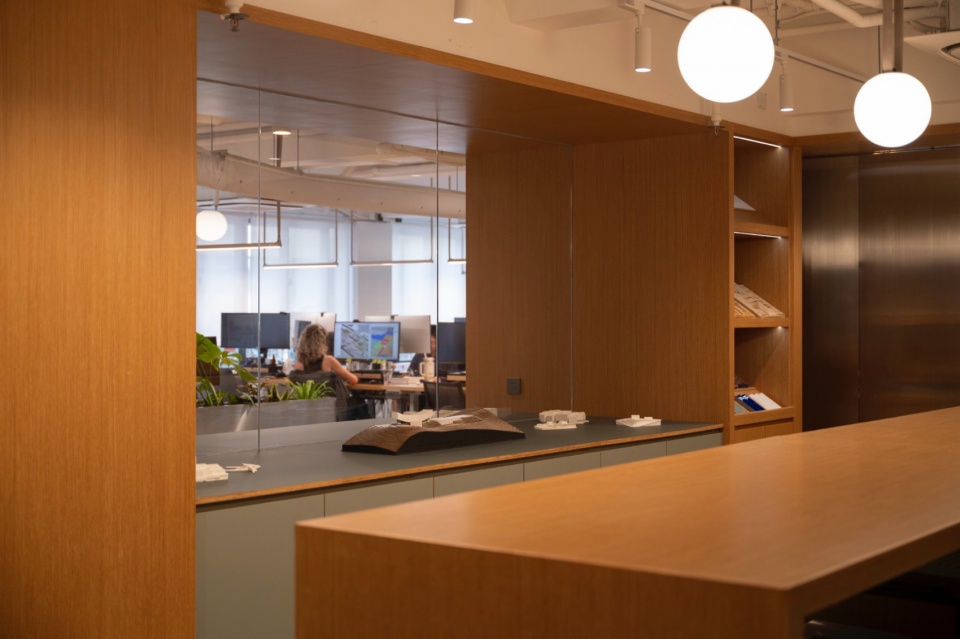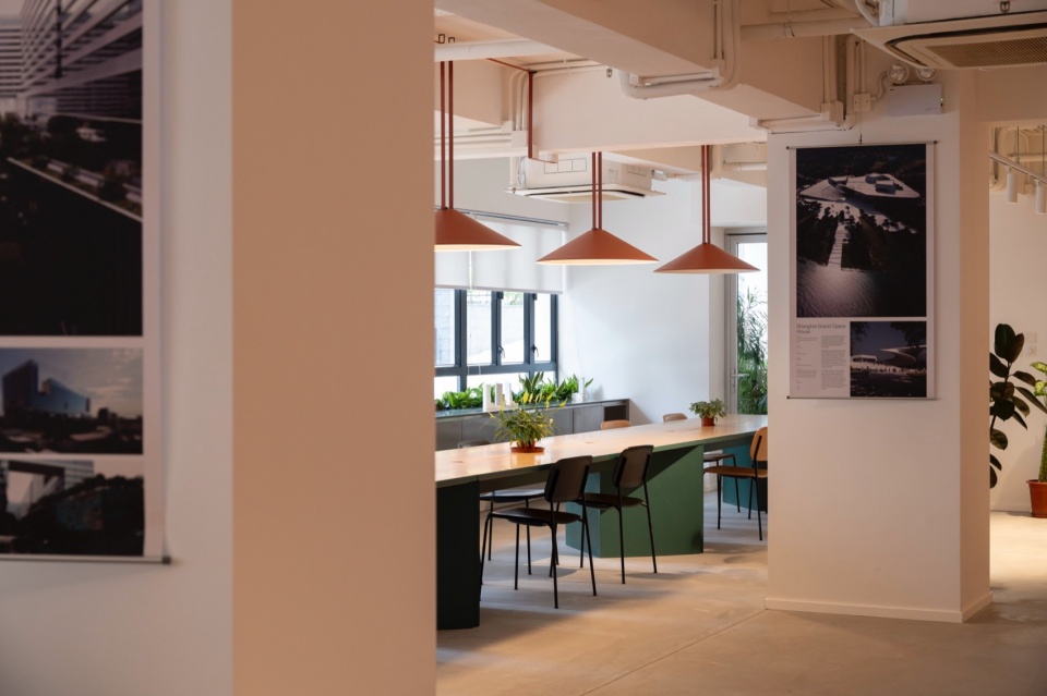 毗邻接待区的是一张公共工作长桌,这是Snøhetta全球工作室的标志性元素。在绿植环绕下,这张桌子成为工作室的“社交核心”,承载共享用餐、非正式交流与自发协作等日常活动。