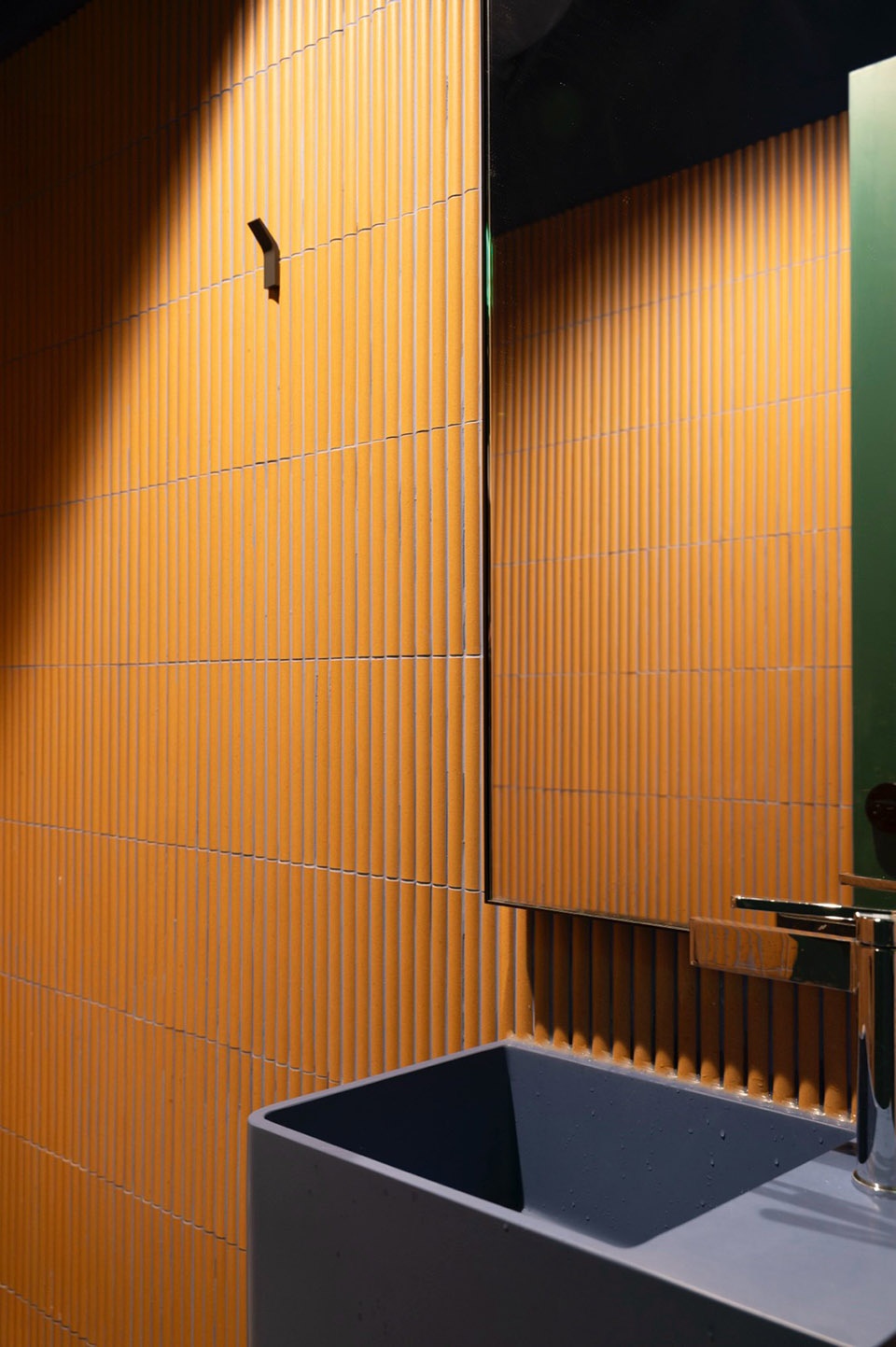 The Dovre-inspired palette forms the foundation of the interior, layered with vibrant hues that echo the energy and diversity of Hong Kong. Earthy terracotta tones ground the entrance, gradually giving way to moss greens and muted browns that evoke the natural terrain. These are complemented by bold accents – warm orange, verdant green, and sky blue – infusing the space with a dynamic and expressive atmosphere.