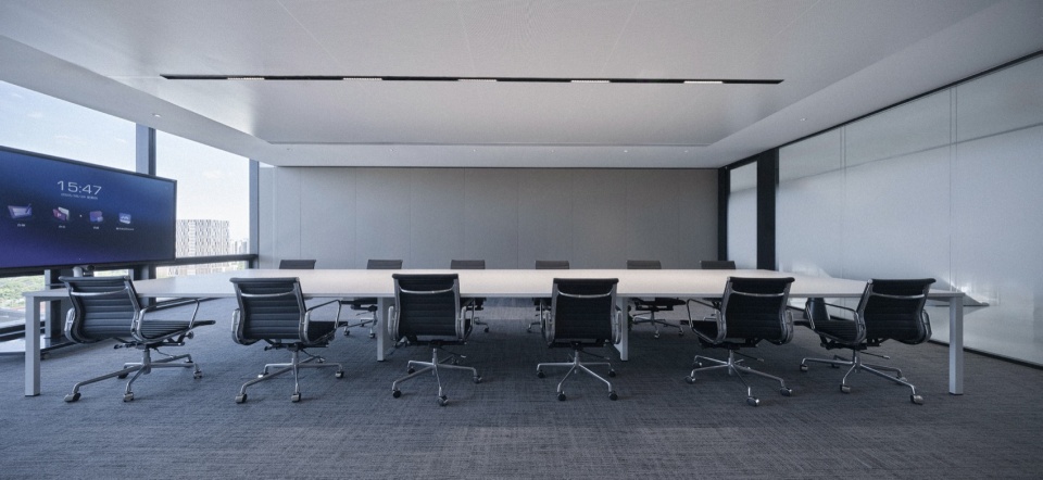 To support Midea Group in upgrading its brand image from a “traditional home appliance enterprise” to a “leading technology enterprise”, J&A devoted ingenuity to interior design, creating a spatial expression exclusive to the brand’s temperament. Taking the lobby area as an example, the lofty space is paired with concise lines, combined with sophisticated lighting design and oversized display screens, shaping a tech-inspired space with strong visual impact. In terms of material selection, anodized aluminum panels, artificial stone, plain-colored slate and exposed ceilings are adopted, which not only have excellent texture and durability, but also further enhance the technological aesthetic quality of the space. The tech-inspired color palette dominated by black, white and gray creates a concise, grand and highly modern spatial atmosphere.