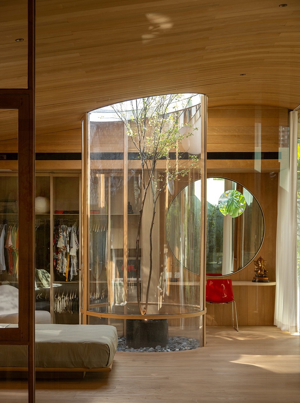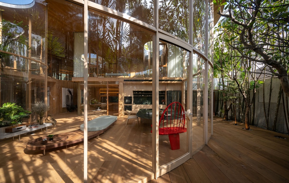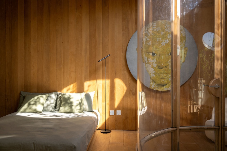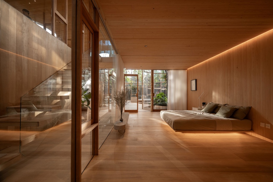 景观并非事后的附加,而是空间的共同创造者。入口处高挑而纤细的树木穿越天花的开口生长,将视线引向天空;室内,舒展的枝叶成为天然的帘幕,过滤视线并确保绝对的私密性。在生态匣居中,建筑与自然并非简单共存,而是彼此拥抱,营造出一处仿佛与城市隔绝的、恒久的静谧绿洲。