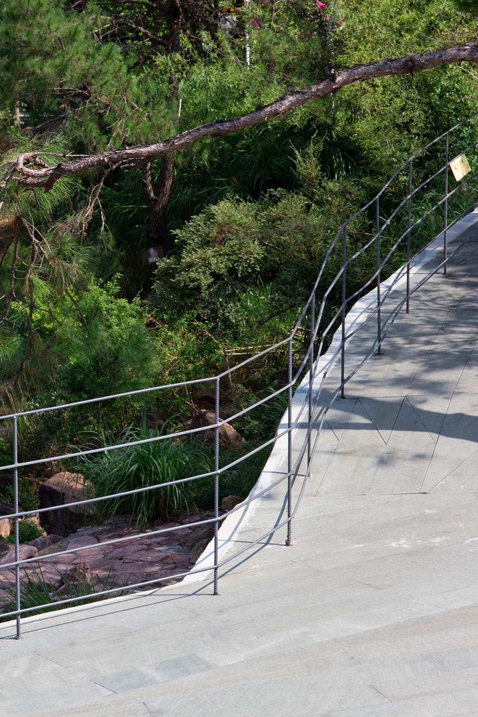 Local villagers continue to inhabit the national park, and the site of Moon Bay Waterfall has long served as an informal gathering place for evening leisure and dancing during the summer months. One of the architectural “boulders” is therefore shaped as a stepped seating platform, allowing this everyday communal activity to persist after construction.