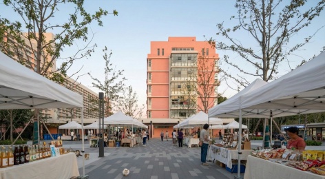 Beyond the building renovations, weico conducted preliminary surveys with residents, property managers, and neighboring communities to understand needs related to public spaces, service facilities, and parking organization. By considering the work patterns and lifestyles of the occupants, public spaces were reimagined through a strategy of “internal-external circulation,” balancing privacy and community engagement while fostering a more open and active environment for younger residents. Originally, the park’s entrance was a dense and difficult-to-maintain green belt. Through landscape redesign, the entrance was opened up, creating a plaza that can switch between a “weekday” mode and a “collective” mode: on weekdays, it functions as a landscaped gathering space, while on weekends it transforms into a public market, strengthening the connection between the park and the surrounding community and enhancing the presence of the dormitory gatehouse.