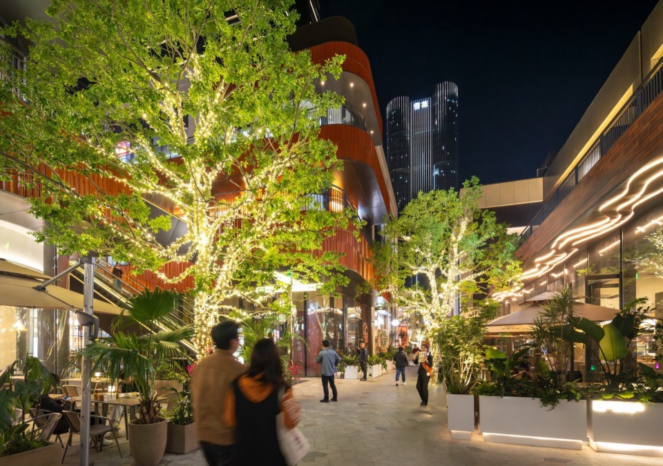 设计将人的活动置于空间的核心:林荫下的休憩台阶、互动水景与开放草坪,鼓励市民自发停留、相遇与参与。从晨间的慢跑到傍晚的市集喧闹以及夜晚节庆的欢聚,空间在不同时段被赋予不同的生命节奏,从而超越单纯的商业场所,成为一片真正属于市民的生活剧场。