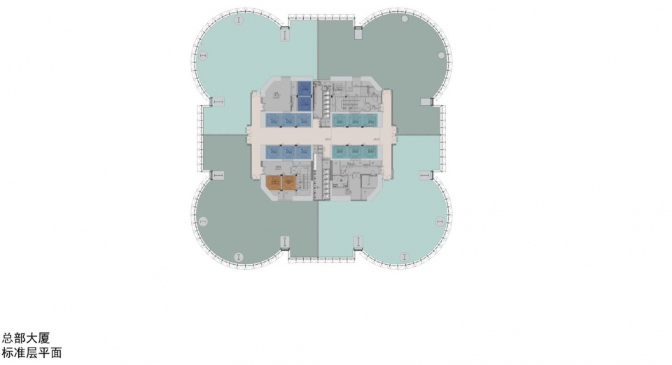 ▼总部大楼标准层平面,Standard floor plan of the headquarters building