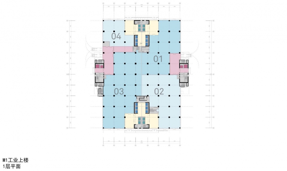 ▼M1工业上楼1层平面,The first floor of the M1 industrial building